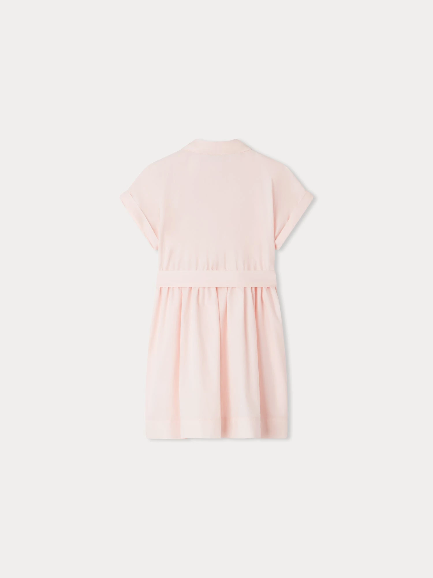 La robe Gisele pour fille affiche des influences vintage avec sa fermeture intégrale à gros boutons contrastants sur le devant. Une des deux poches plaquées sur la poitrine se distingue par une broderie cerise.