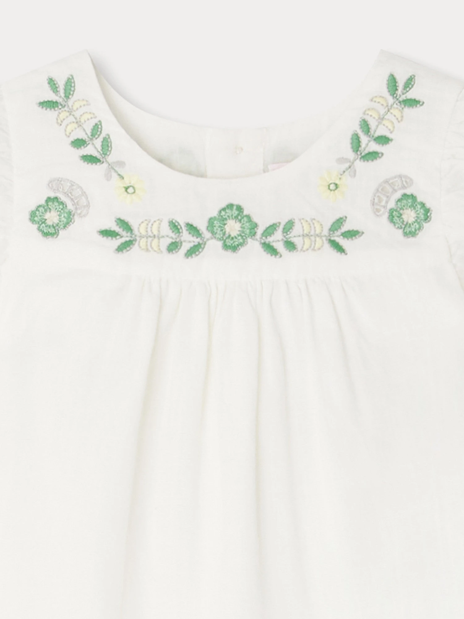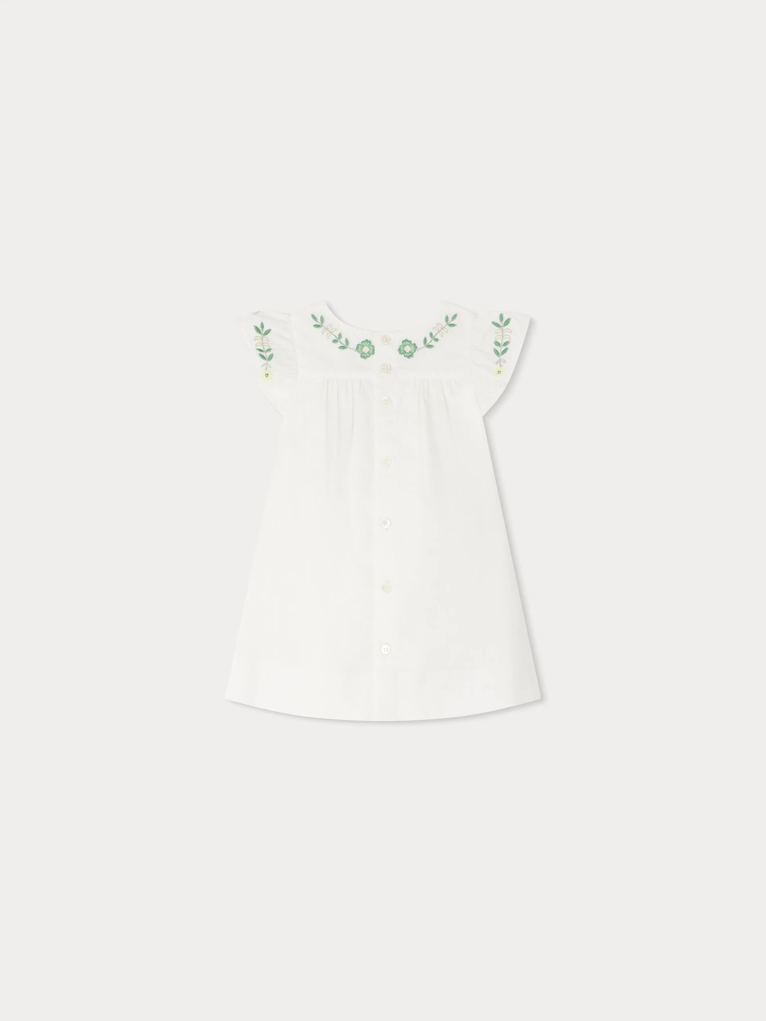 Confectionnée en coton biologique et rehaussée de broderies florales, cette robe pour bébé Laurie est idéale pour composer une tenue bohème. Elle comporte une doublure en voile de coton.