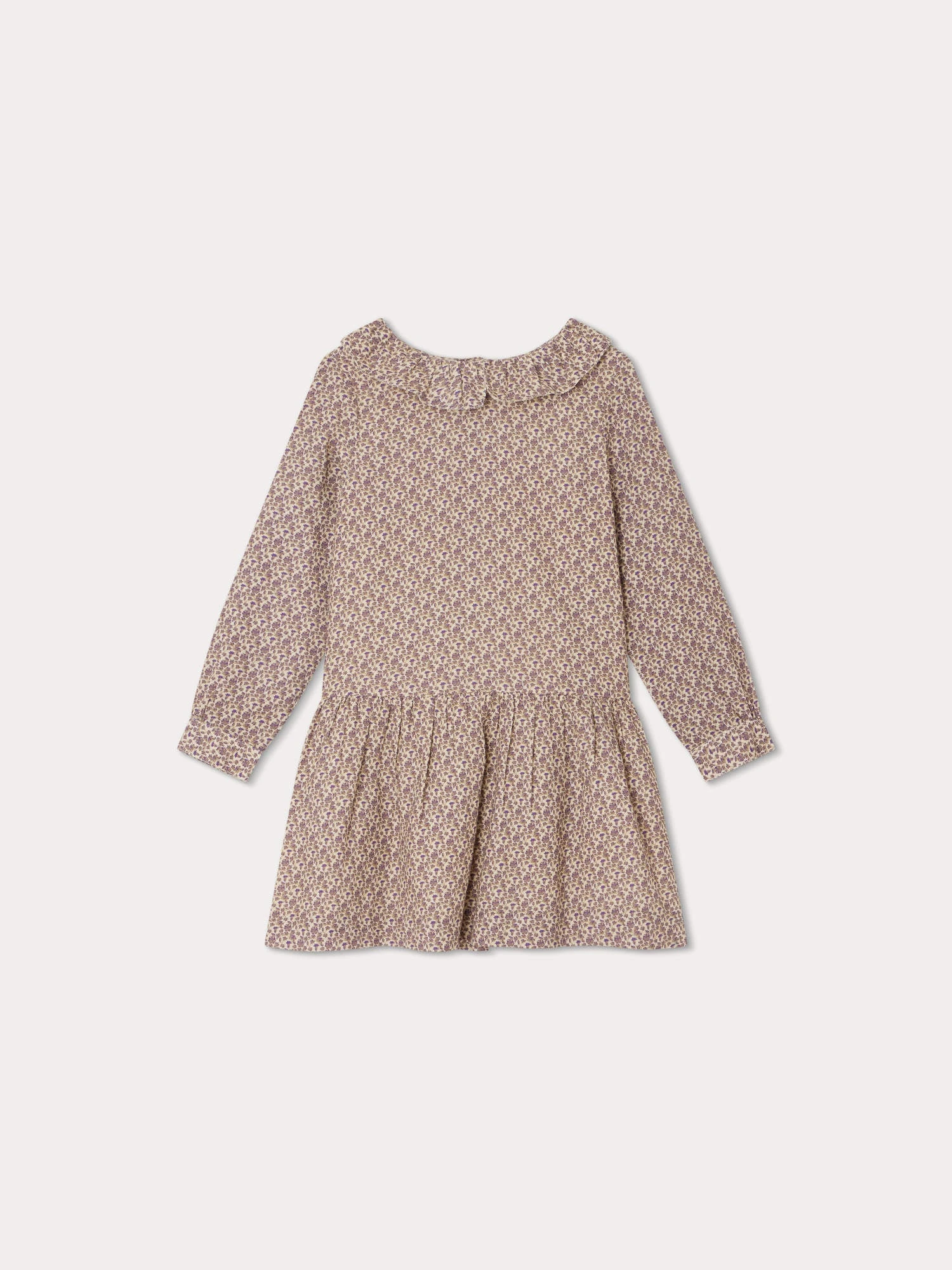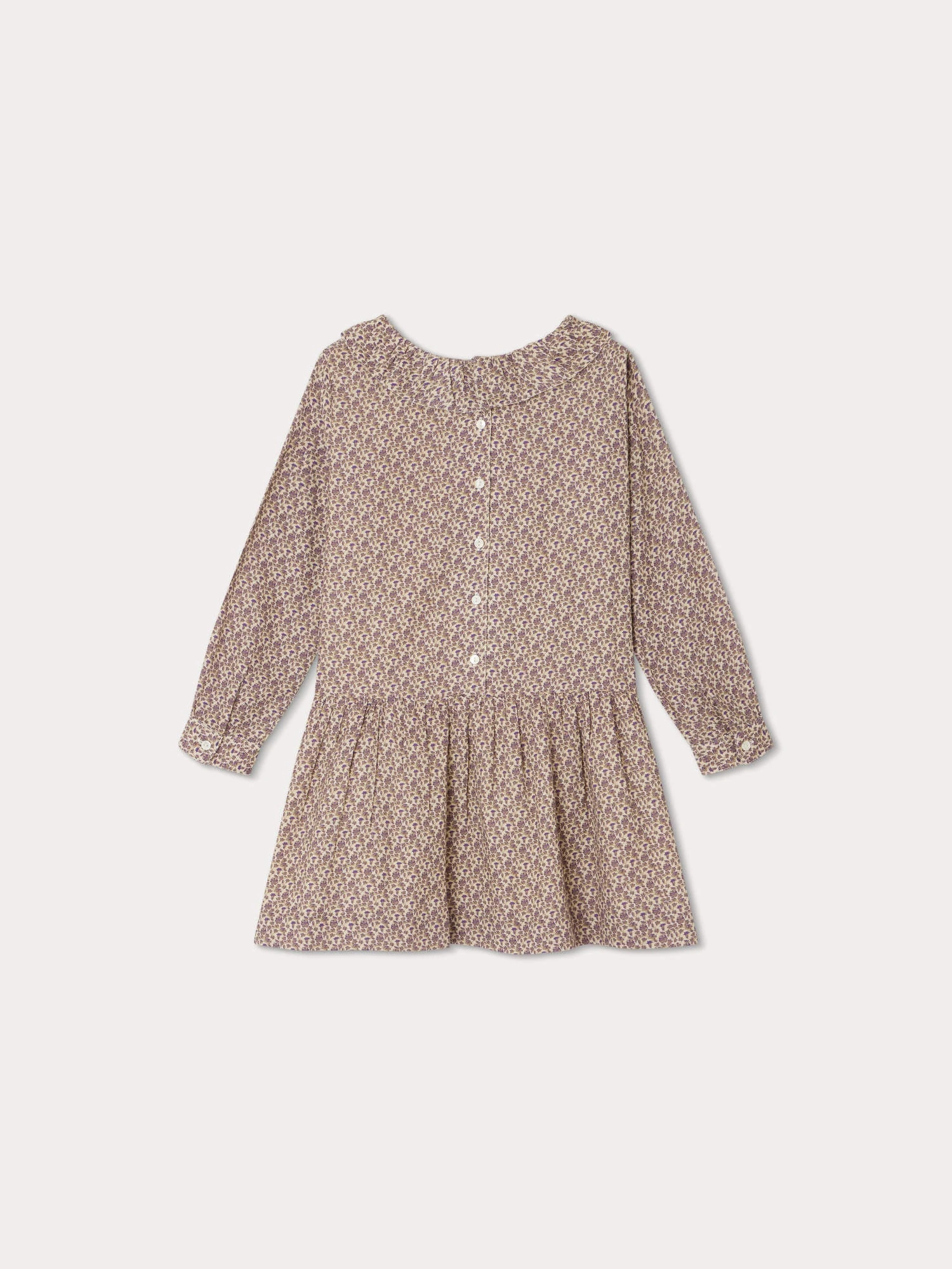 Cette robe pour fille Mariela se démarque par sa taille basse et son large volant au col. Elle se pare d’un motif floral frais et ravissant.