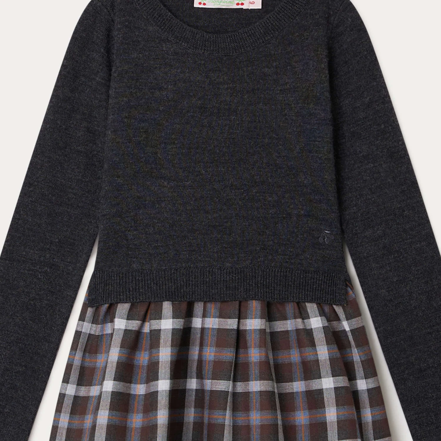 Cette confortable robe bimatière Tayra pour fille associe un pull à manches longues et une jupe à carreaux. La base côtelée du haut s’orne de la cerise iconique brodée en ton sur ton. A la fois douce, résistante et biodégradable, cette fibre naturelle est particulièrement conçue pour les peaux les plus sensibles. L’exigence dans le choix de matières de qualité confère à cette pièce de durer et d’être transmise de saison en saison.