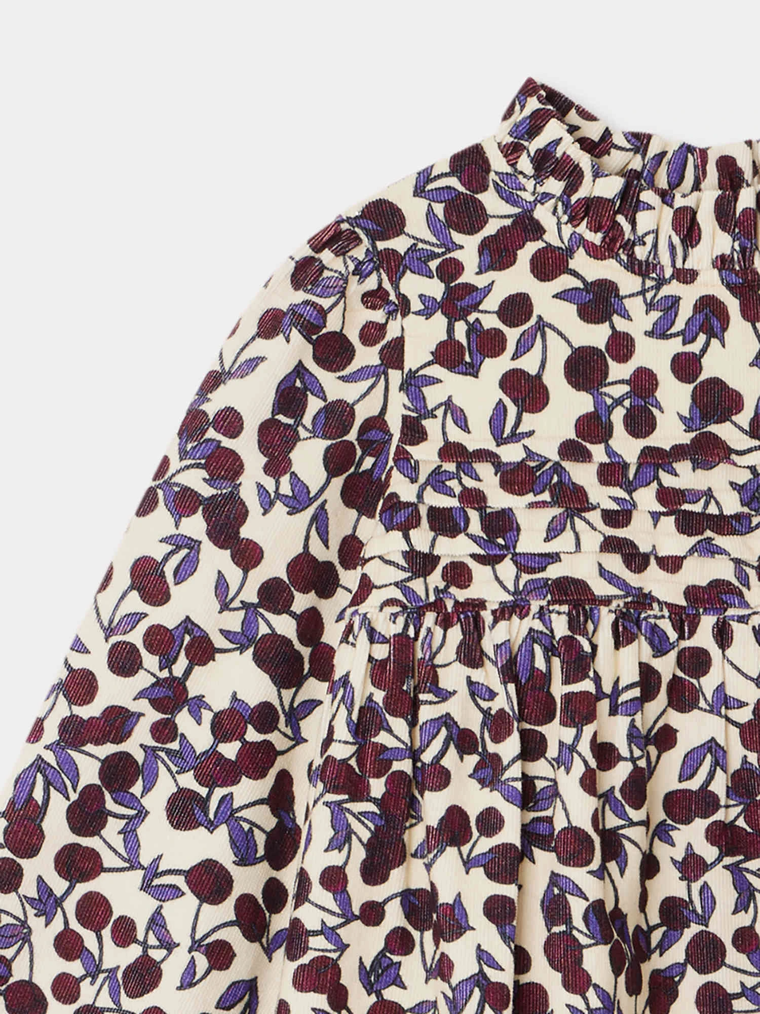 Caractérisée par son volume ample et son imprimé cerises emblématique, cette robe à manches longues Topaz pour fille est un incontournable de la saison. Elle s’orne d’une base froncée et d’un col plissé.