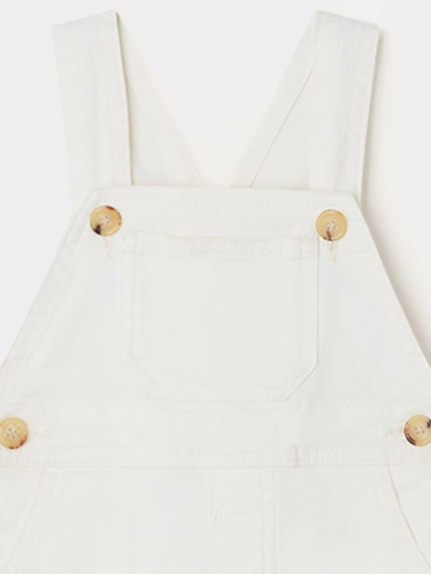 En twill de coton uni, cette salopette courte Aaron pour bébé dispose de bretelles réglables et de boutons à la taille. L’entrejambe pressionné facilite le change.