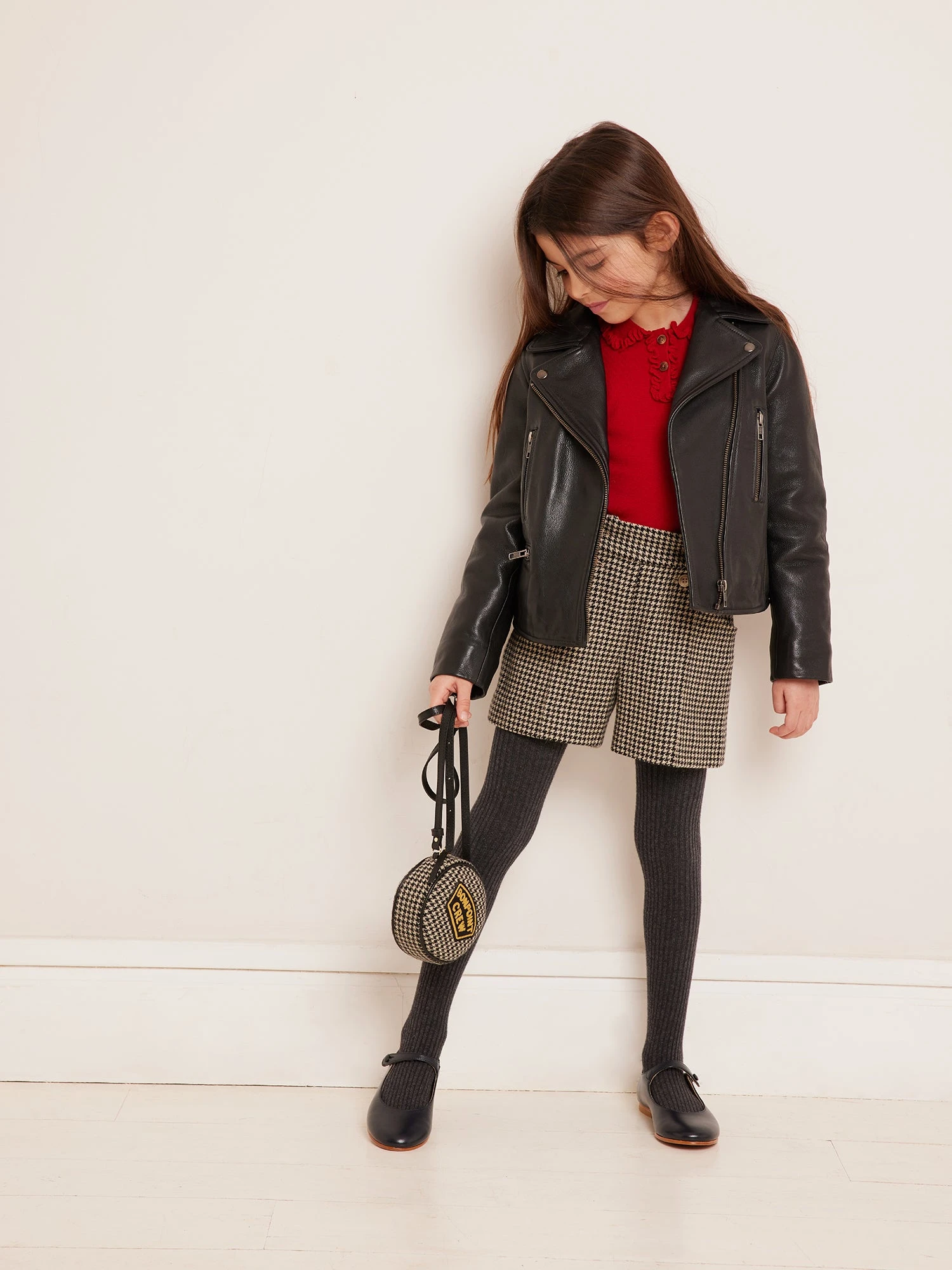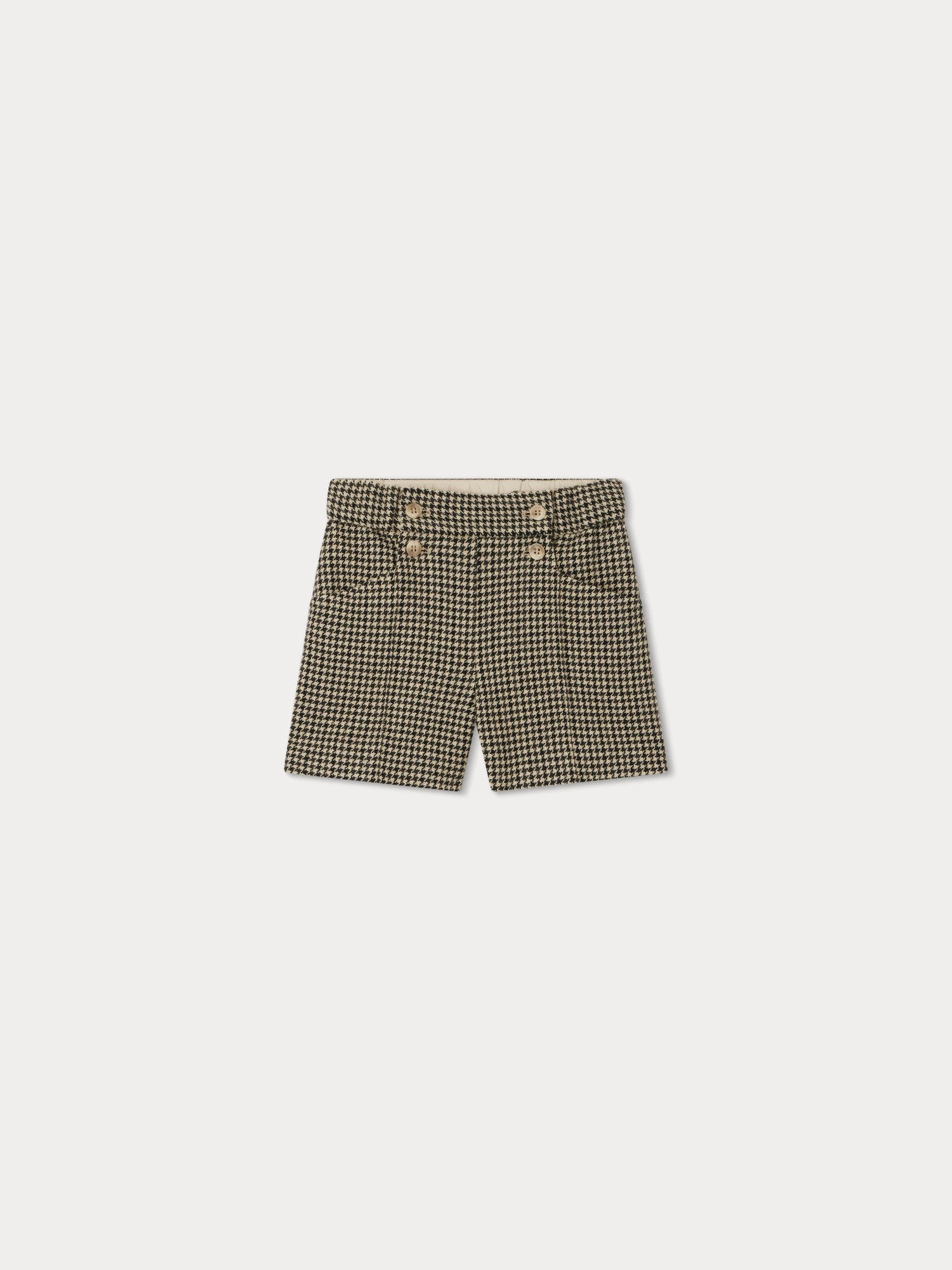 Avec son tissu raffiné en laine majoritaire, le short Diplome s’approprie l’intemporel motif pied-de-poule. Deux rangs verticaux de deux boutons créent une ouverture originale devant.