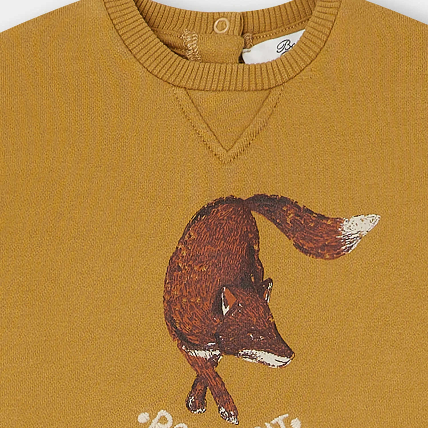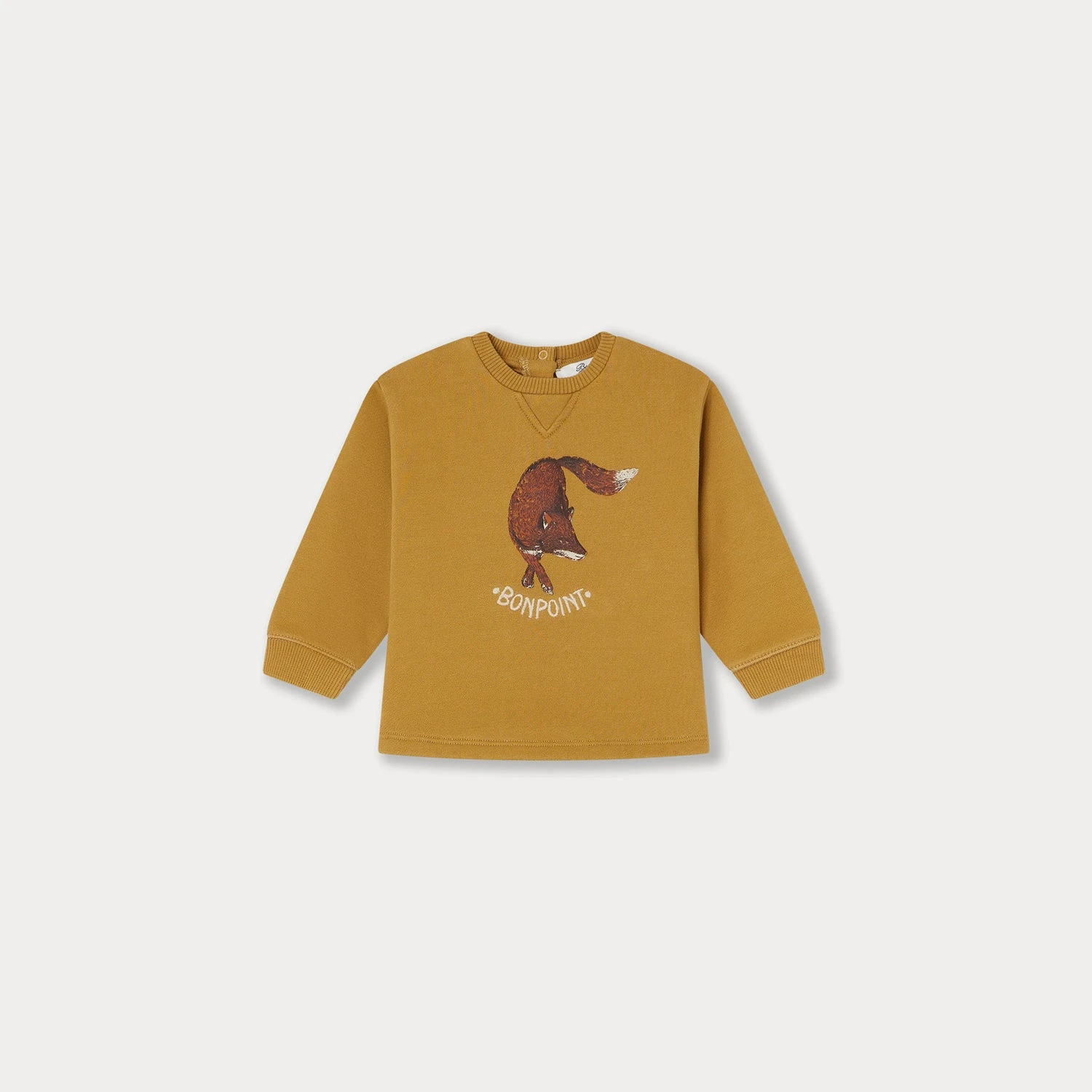 Ce sweat pour bébé Benjamine séduit par son imprimé réaliste, souligné du logo Bonpoint. Il comporte une découpe en V sous le col et s’ouvre par des boutons au dos.