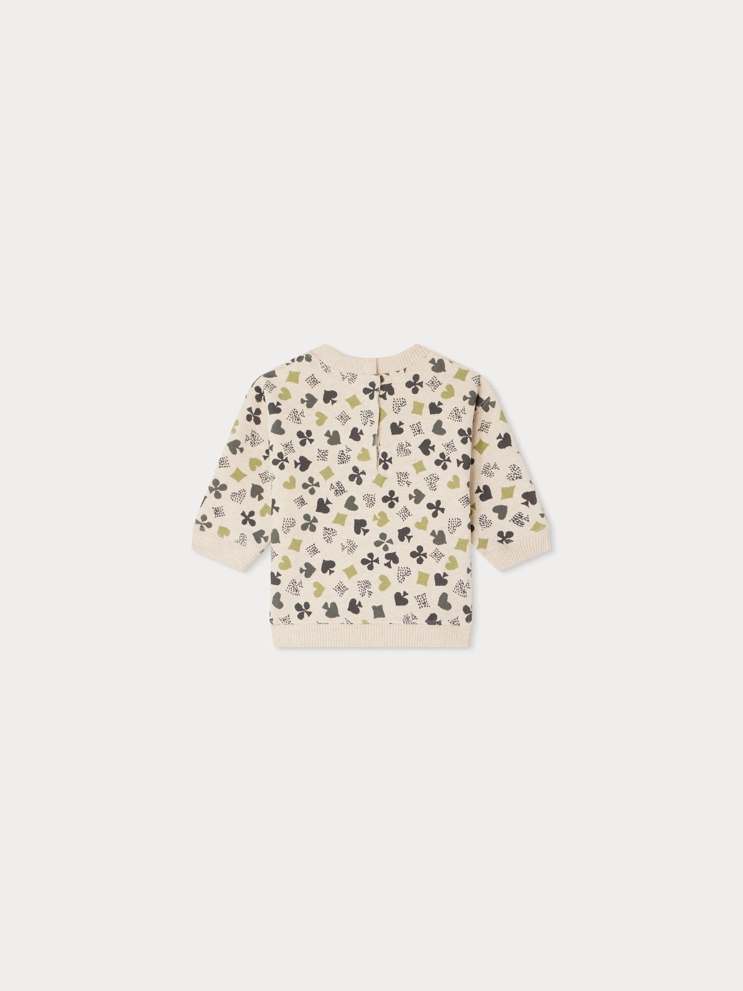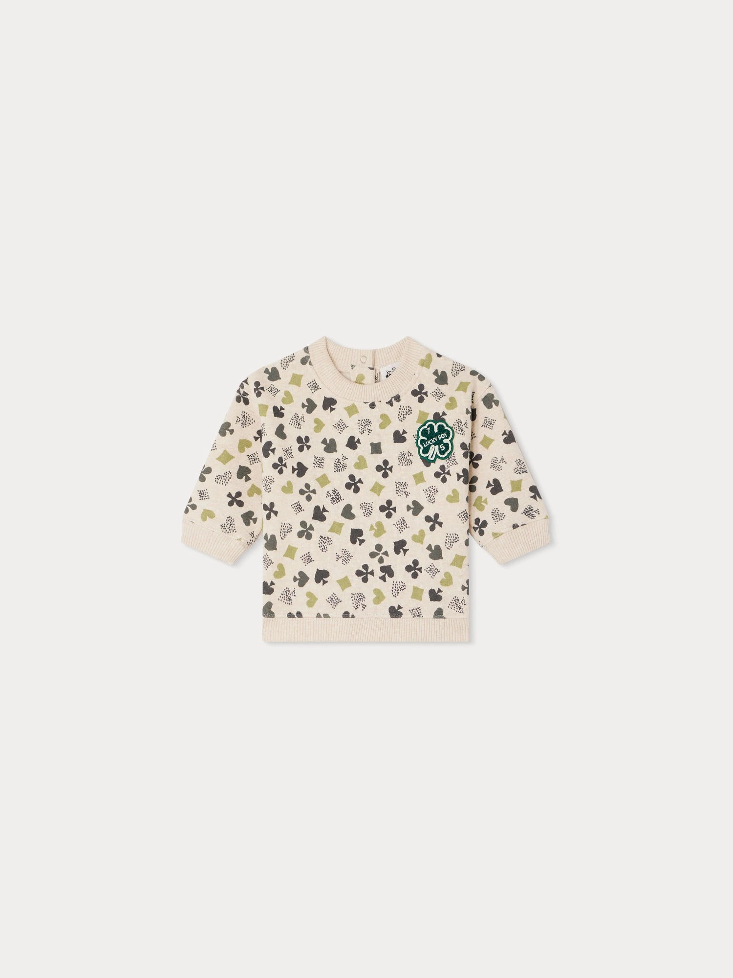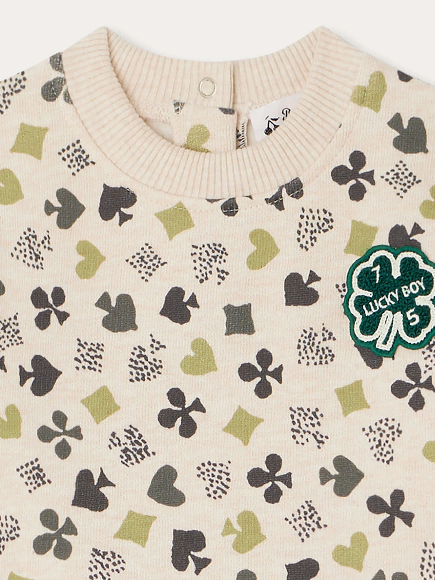 En molleton de coton biologique, ce sweatshirt à manches longues Dady pour bébé s’orne d’un imprimé exclusif et d’un patch trèfle à quatre feuilles en éponge bouclette. Ses boutons dans le dos facilitent l’habillage.