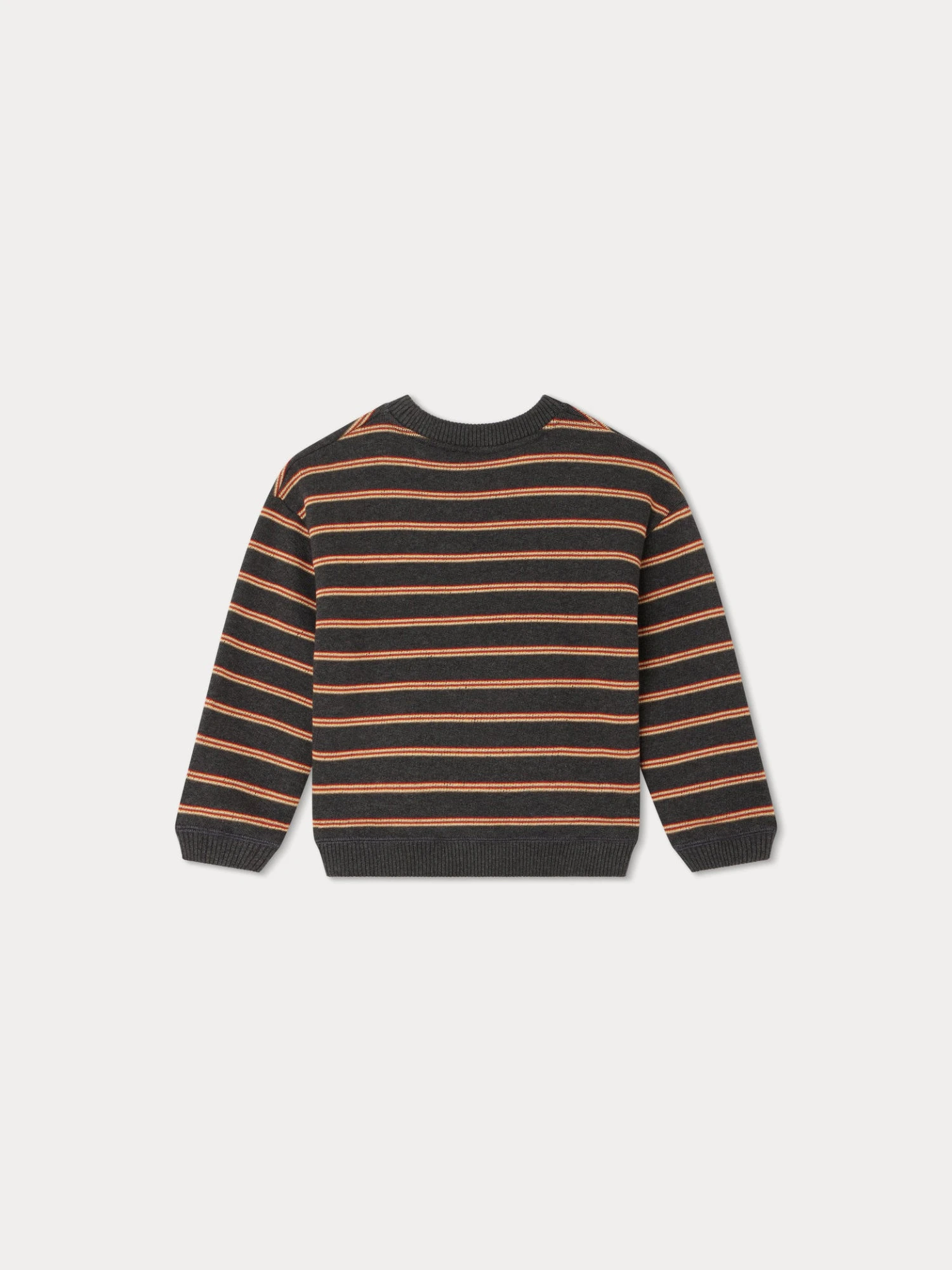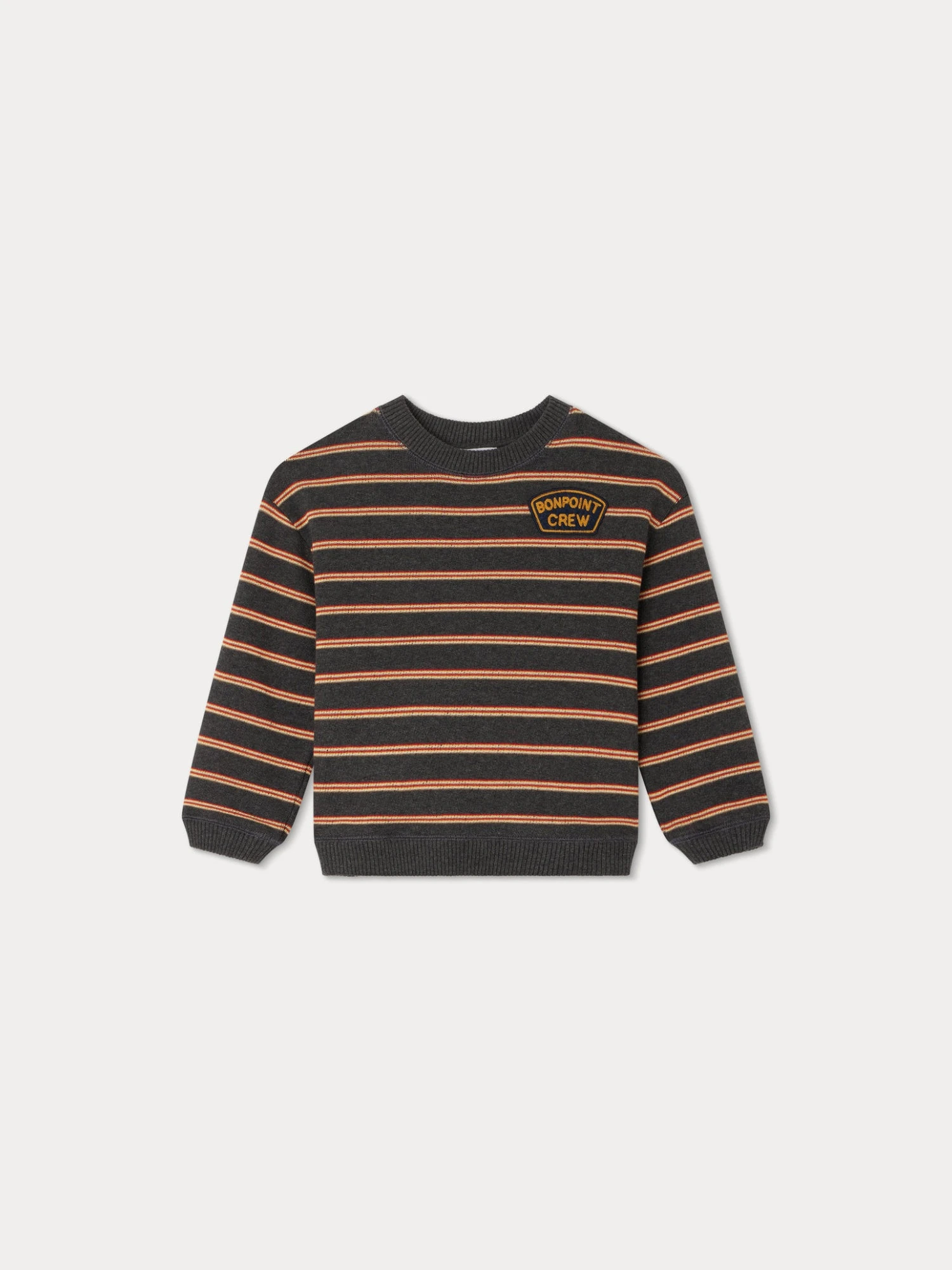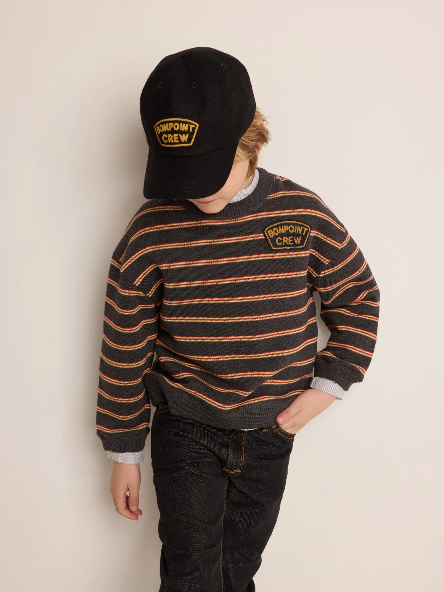 En molleton rayé, ce sweatshirt à col rond et manches longues Tonino pour garçon est un incontournable de la Maison. Il est rehaussé d’un écusson brodé Bonpoint Crew sur la poitrine.