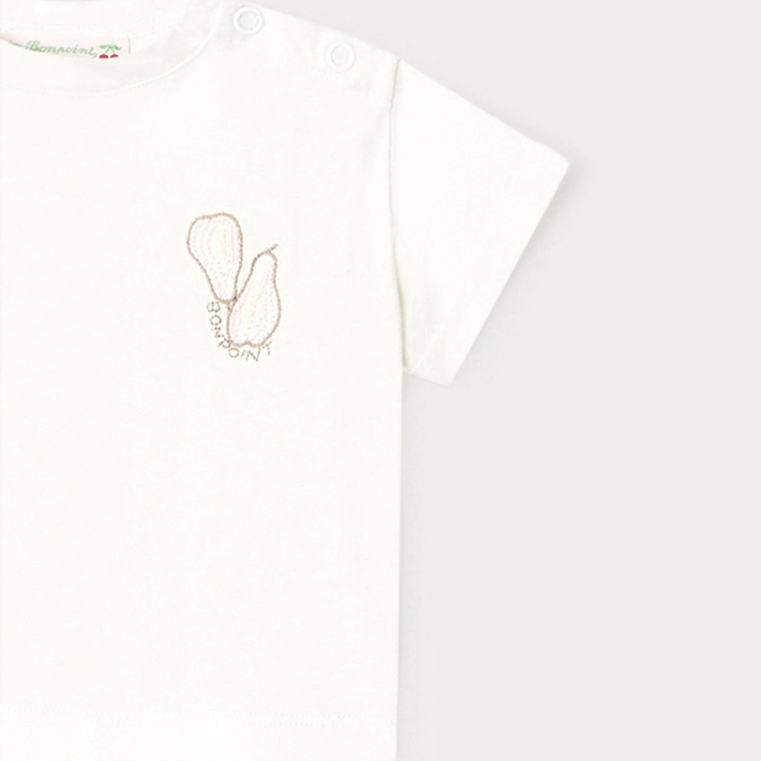 Avec sa coupe légèrement ample, ce t-shirt pour bébé Aiman conjugue confort et modernité. Confectionné en coton biologique, il se pare d’une ravissante broderie poire au niveau de la poitrine.
