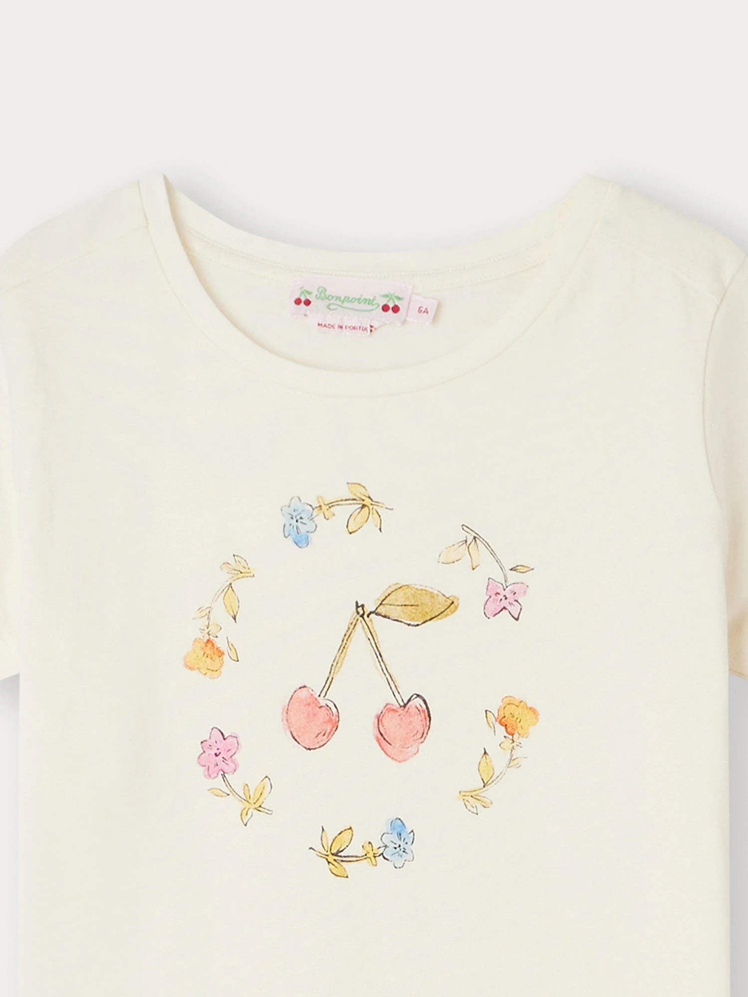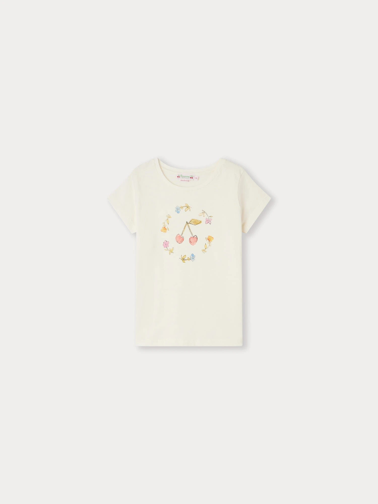 Le t-shirt Alcala pour fille se distingue par sa sérigraphie romantique à l’avant, mêlant de tendres fleurs et la cerise, emblème de la Maison. Ce modèle est confectionné en coton issu de l’agriculture biologique.