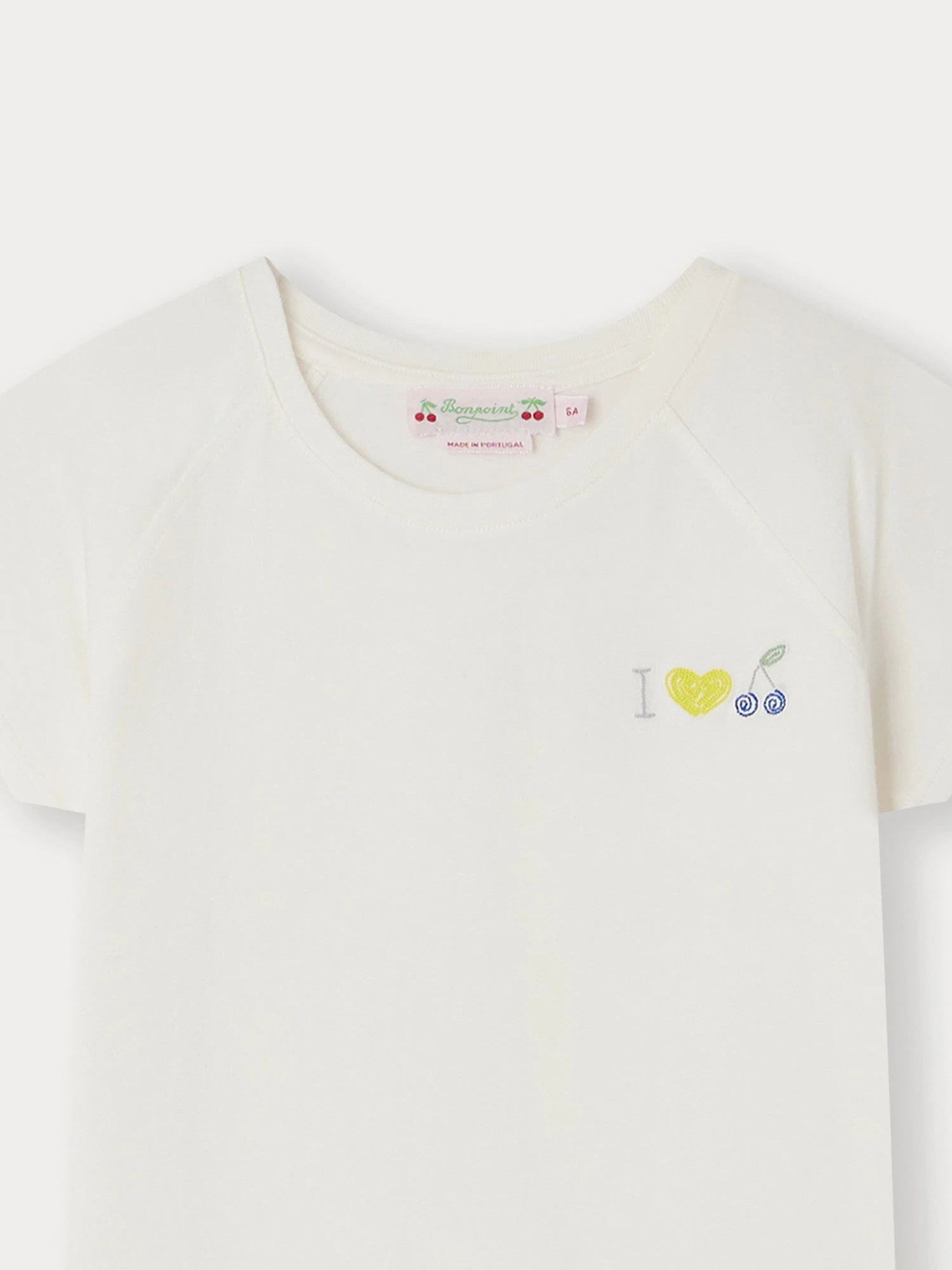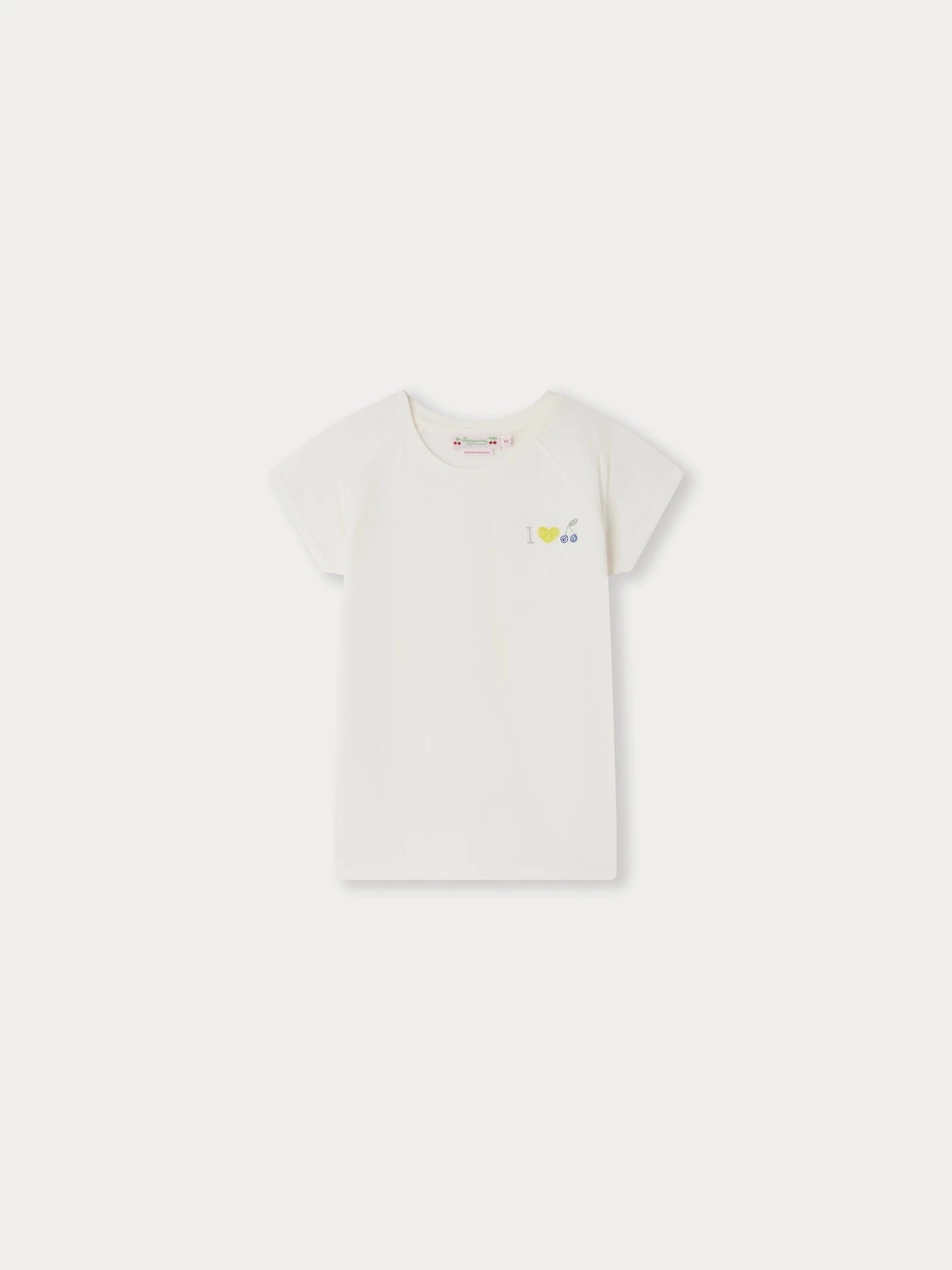 Le t-shirt Asmae pour fille se démarque par sa coupe droite et son fond uni, alliant élégance et sobriété. L’inscription malicieuse façon pointillés ajoute une touche de couleur sur la poitrine.