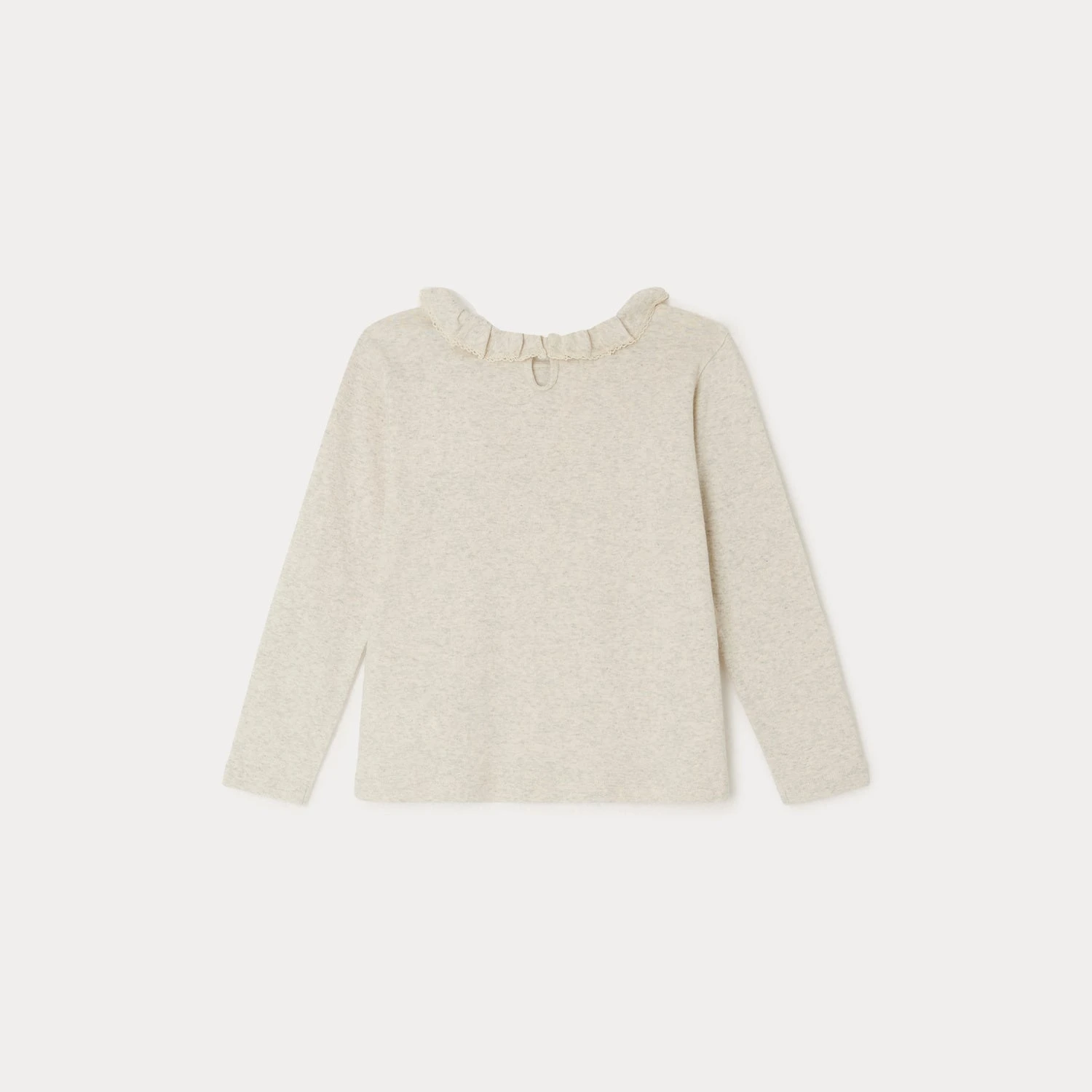Le t-shirt Bess pour fille se démarque par sa collerette à plis creux, finie par une adorable dentelle. Ce modèle en fine maille côtelée se dévoile dans une teinte unie.
