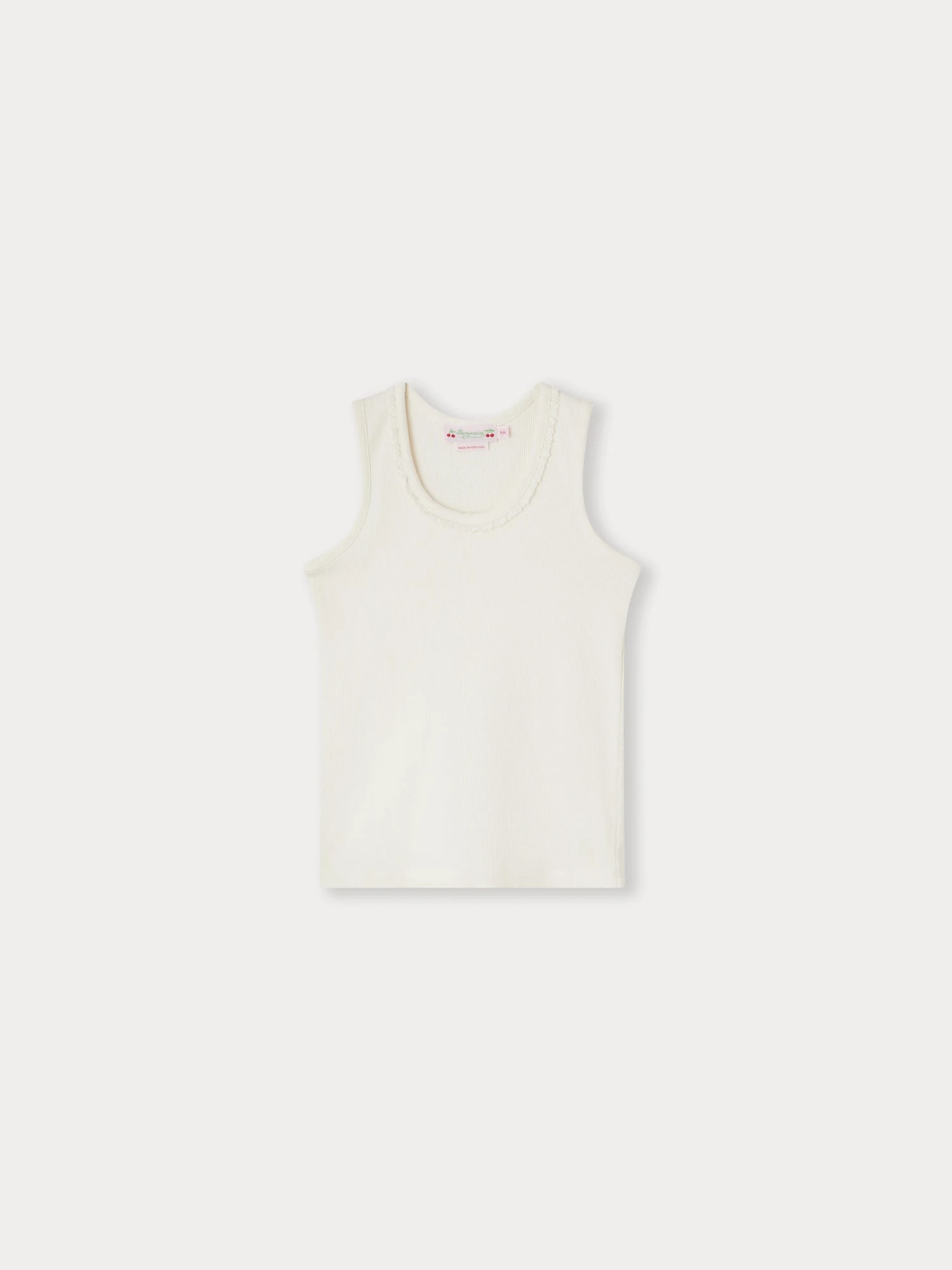 Le t-shirt pour fille Coline rivalise d’élégance avec sa délicate collerette dentelée. Uni, ce modèle sans manches est confectionné dans une fine maille de coton biologique.