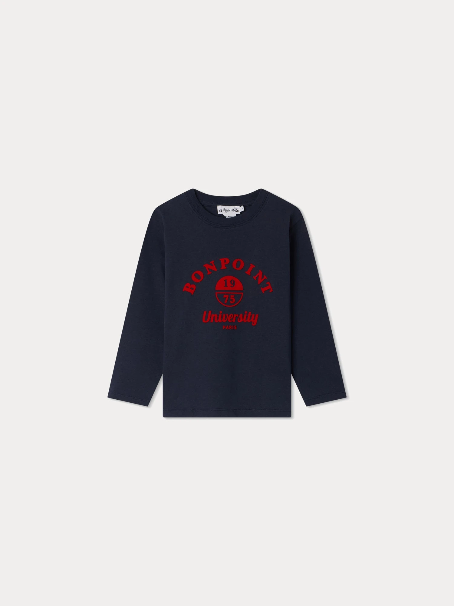 Le t-shirt Tadda pour garçon se caractérise par son grand logo contrastant devant qui revendique son inspiration du style universitaire. Ce modèle droit est réalisé en coton issu de l’agriculture biologique.