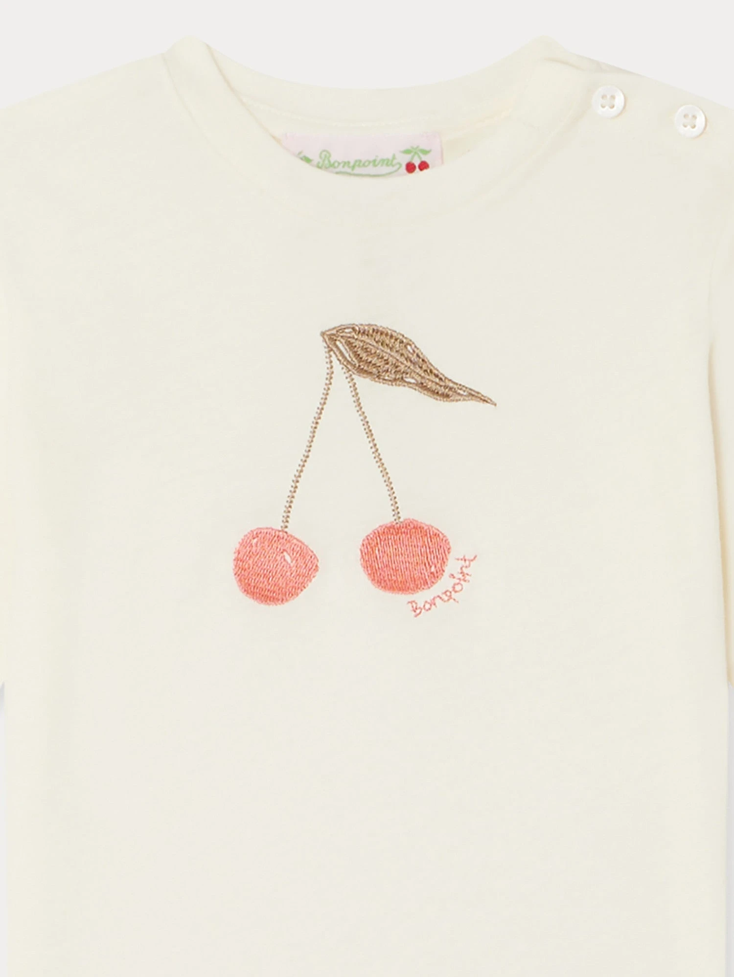 En coton biologique, le t-shirt à manches longues Tahsina pour bébé affiche une coupe droite. Une grande broderie cerise signée Bonpoint égaie l’avant de cet incontournable de la saison.