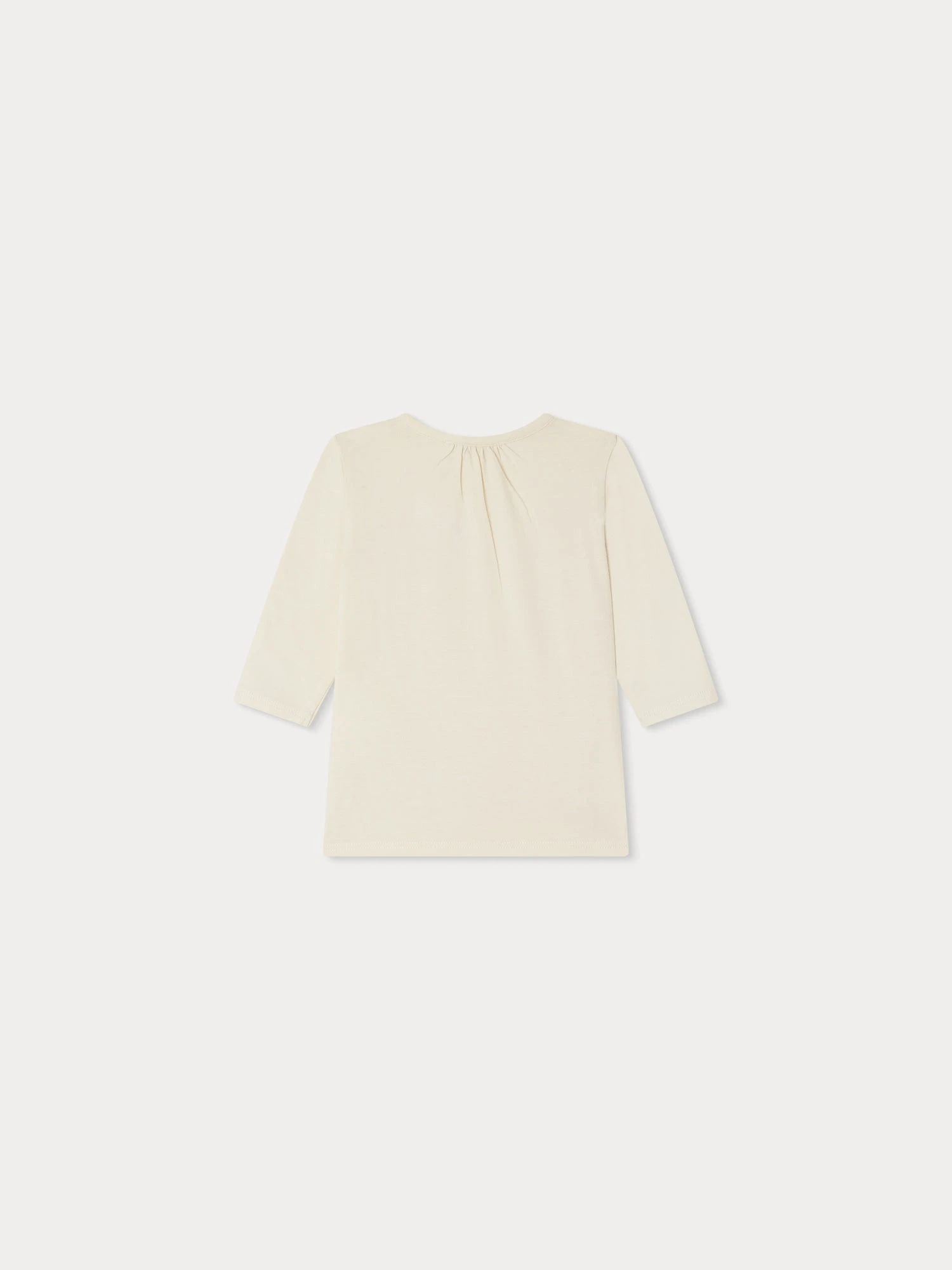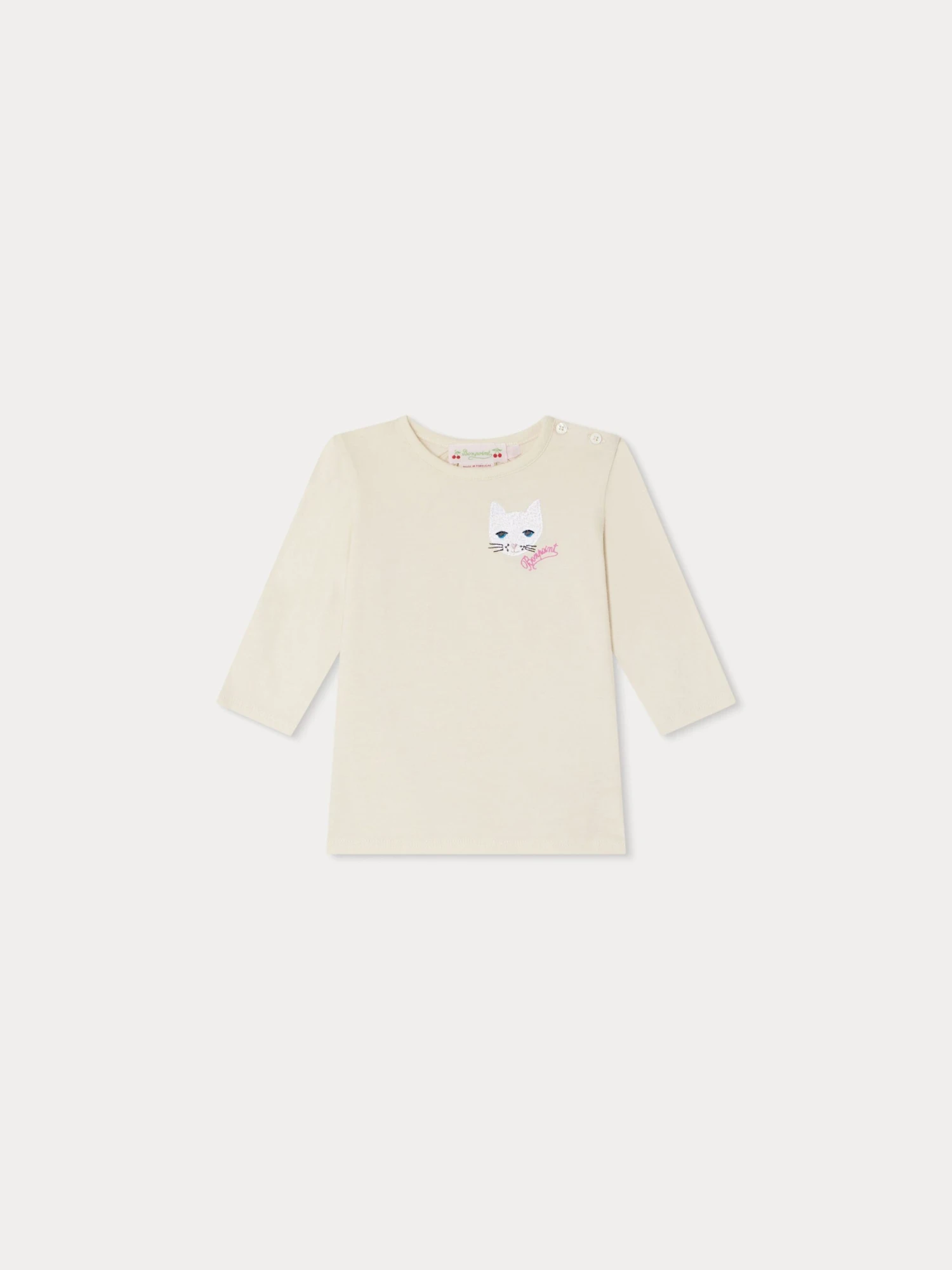 En coton biologique, le t-shirt à manches longues Tahsina pour bébé se boutonne sur l’épaule. Cette pièce iconique s’orne d’une tête de chat brodée et de la signature Bonpoint sur la poitrine.