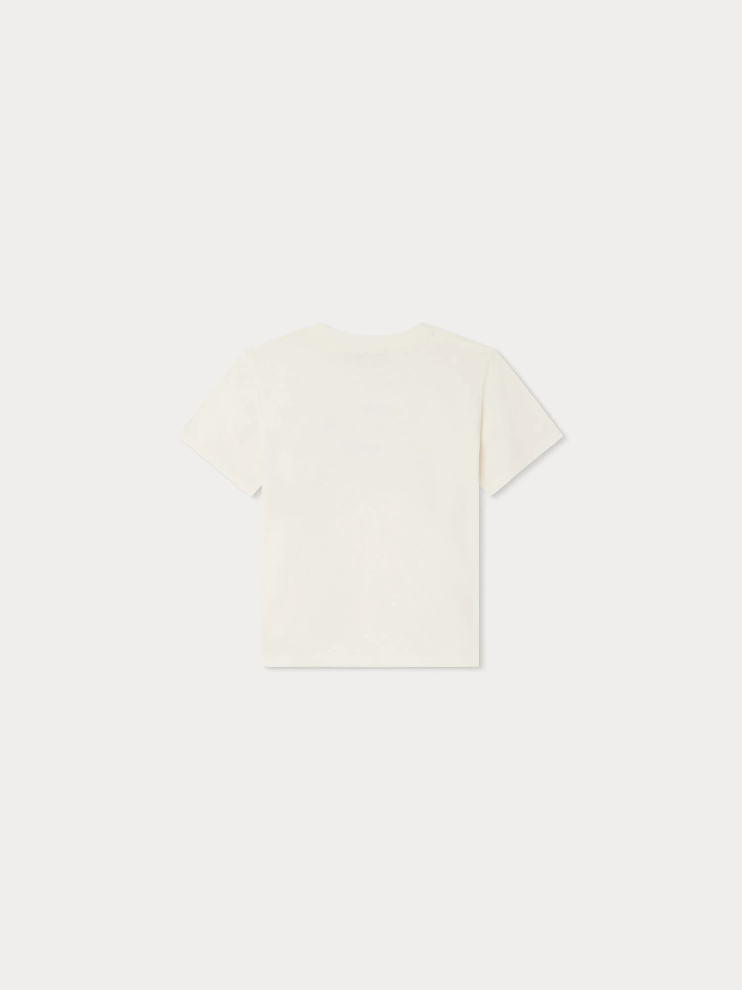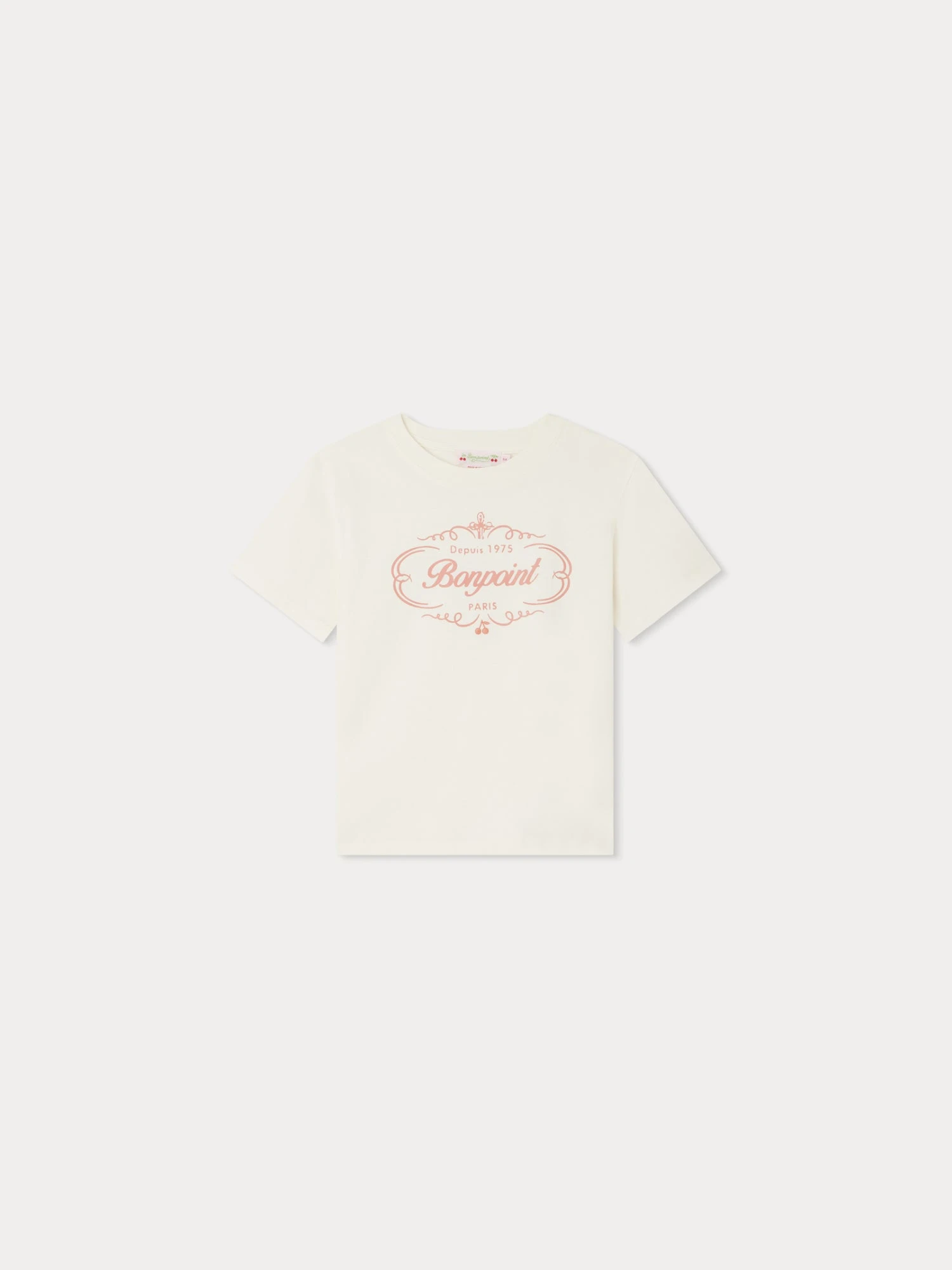 Le t-shirt Thida pour fille témoigne de l’engagement écoresponsable de la Maison avec son coton issu de l’agriculture biologique. Le blason Bonpoint est imprimé en contraste devant et souligné d’une cerise assortie.