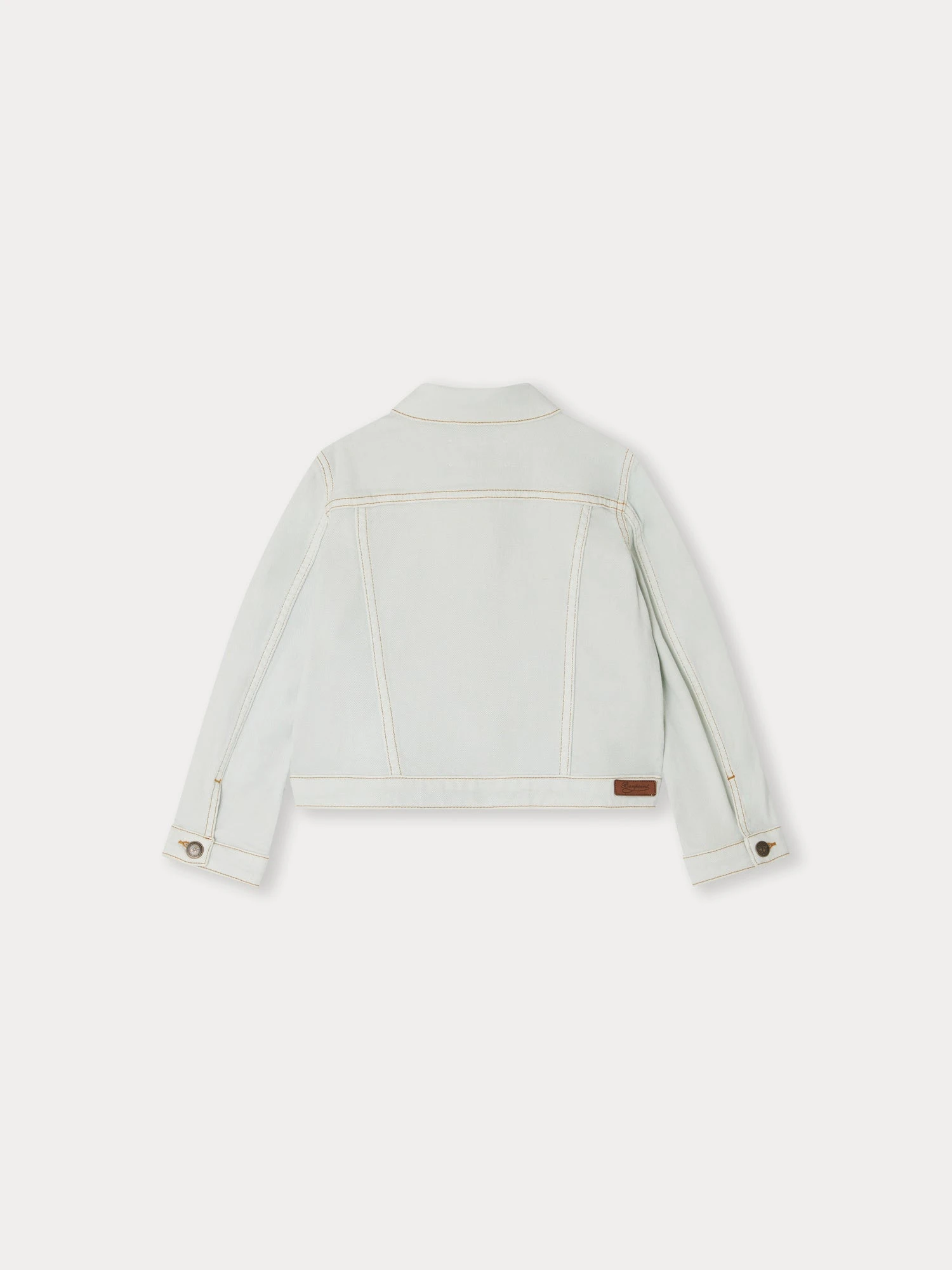 En jean, cette veste 4 poches Cassidy pour fille s’orne d’une broderie « I love Bonpoint » sur la poitrine. Des boutons griffés et un jacron en cuir signent le modèle.