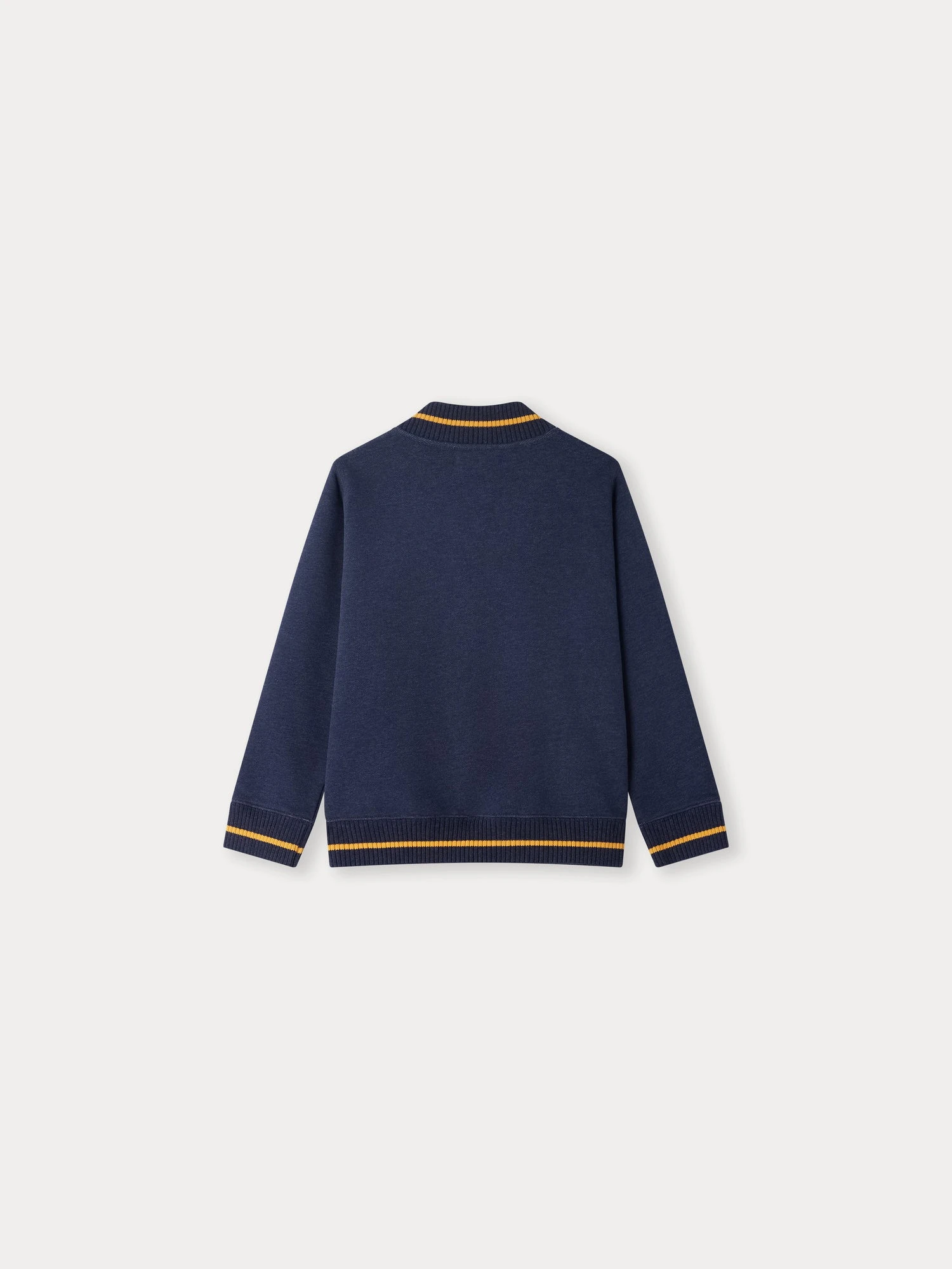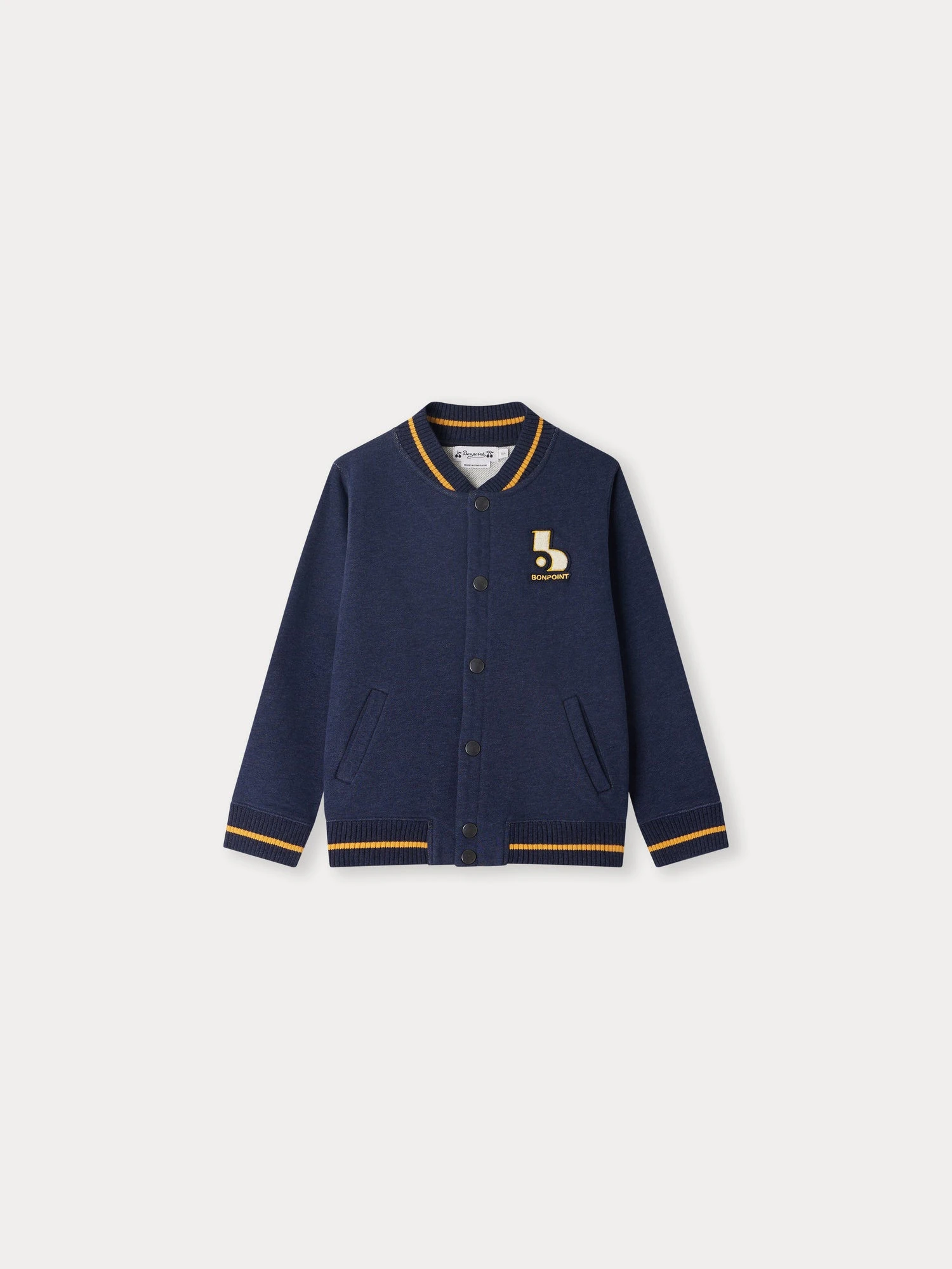 En molleton de coton biologique, la veste Christopher pour garçon adopte le style college. Pressionné à l’avant, ce modèle est fini d’un bord-côte rayé et d’un logo en bouclette sur la poitrine.