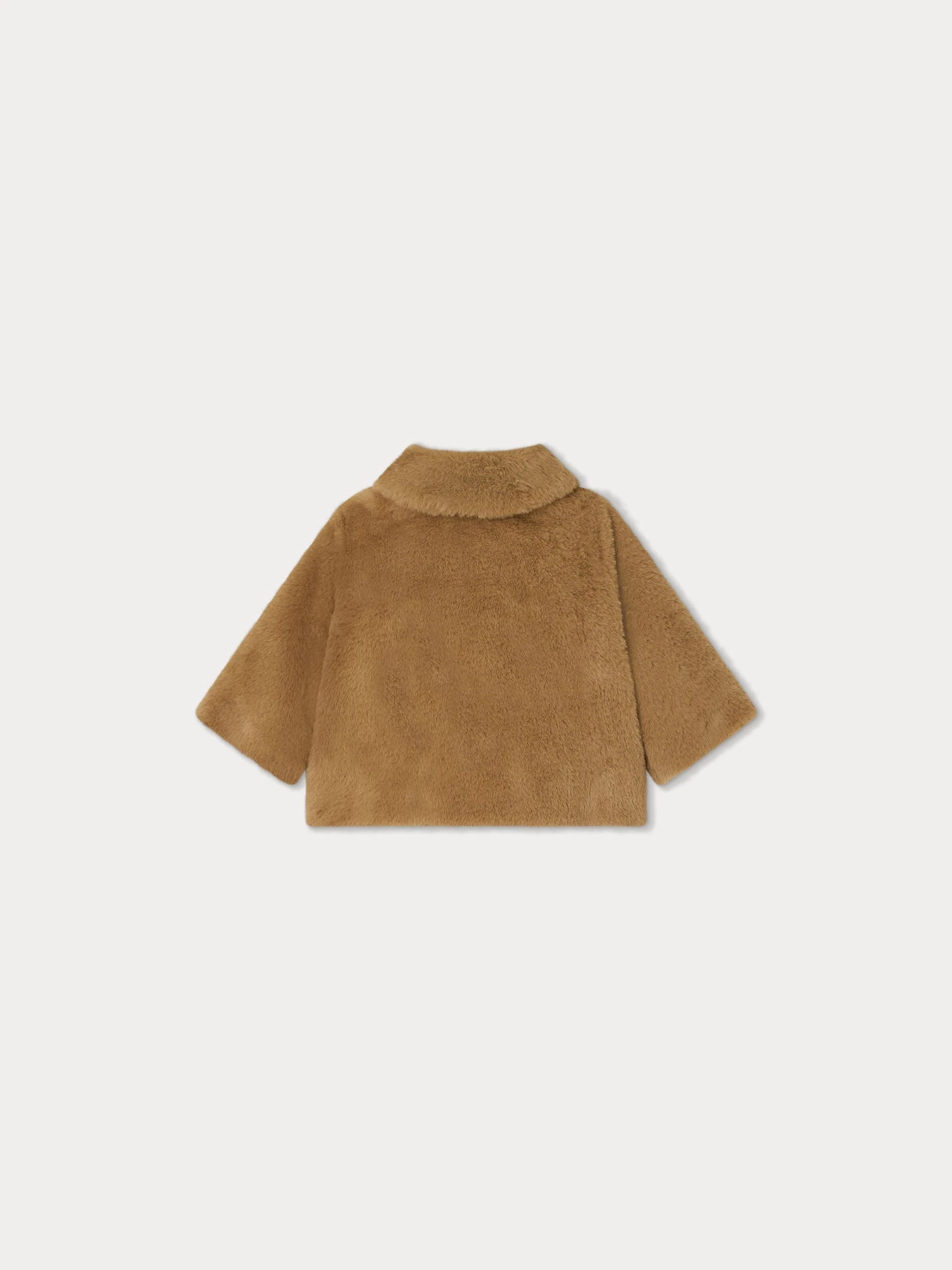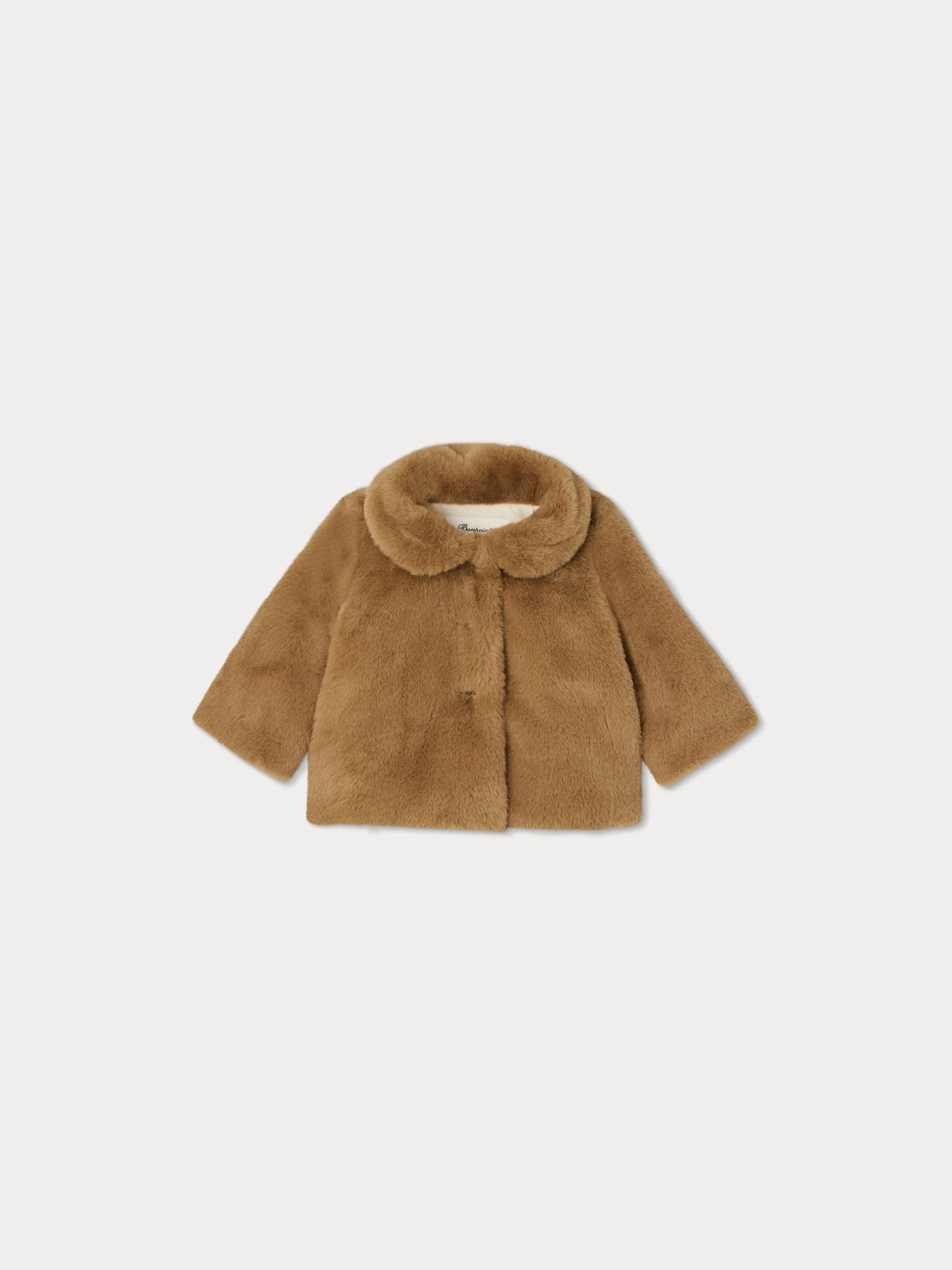Entièrement réalisée en fausse fourrure ultra confortable, la veste Douceur pour bébé porte très bien son nom. Le petit col Claudine se décline dans la même matière.