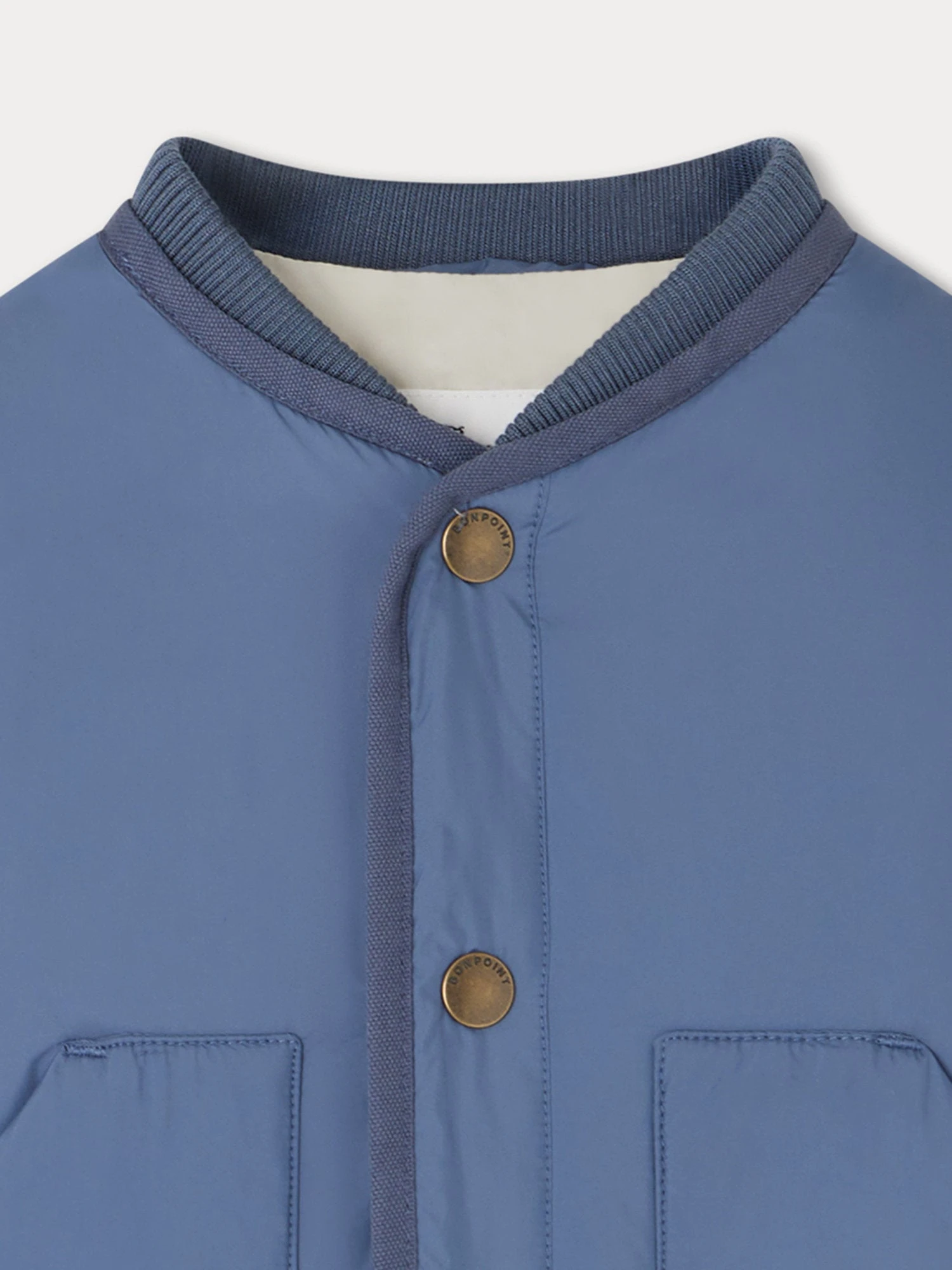 La veste Feliciano protège les bébés des intempéries avec sa matière déperlante issue de fibres recyclées. Des poches plaquées aux ouvertures obliques décorent le devant.