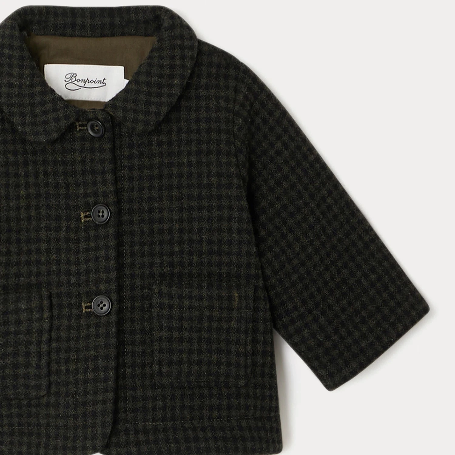Cette veste matelassée pour bébé Lutin est moderne et élégante avec son motif à carreaux, son ouverture à deux boutons et son col de chemise. Elle est confectionnée en laine mélangée pour plus de chaleur.