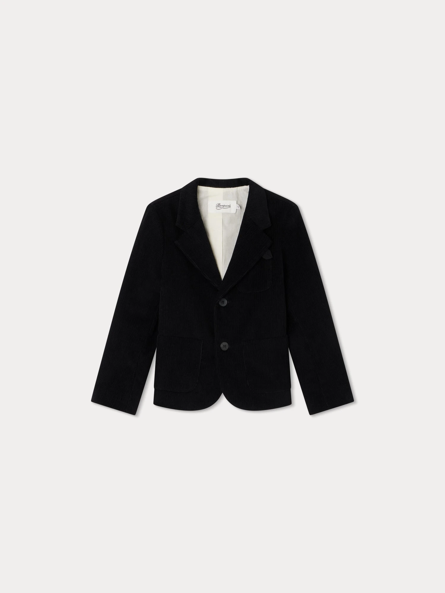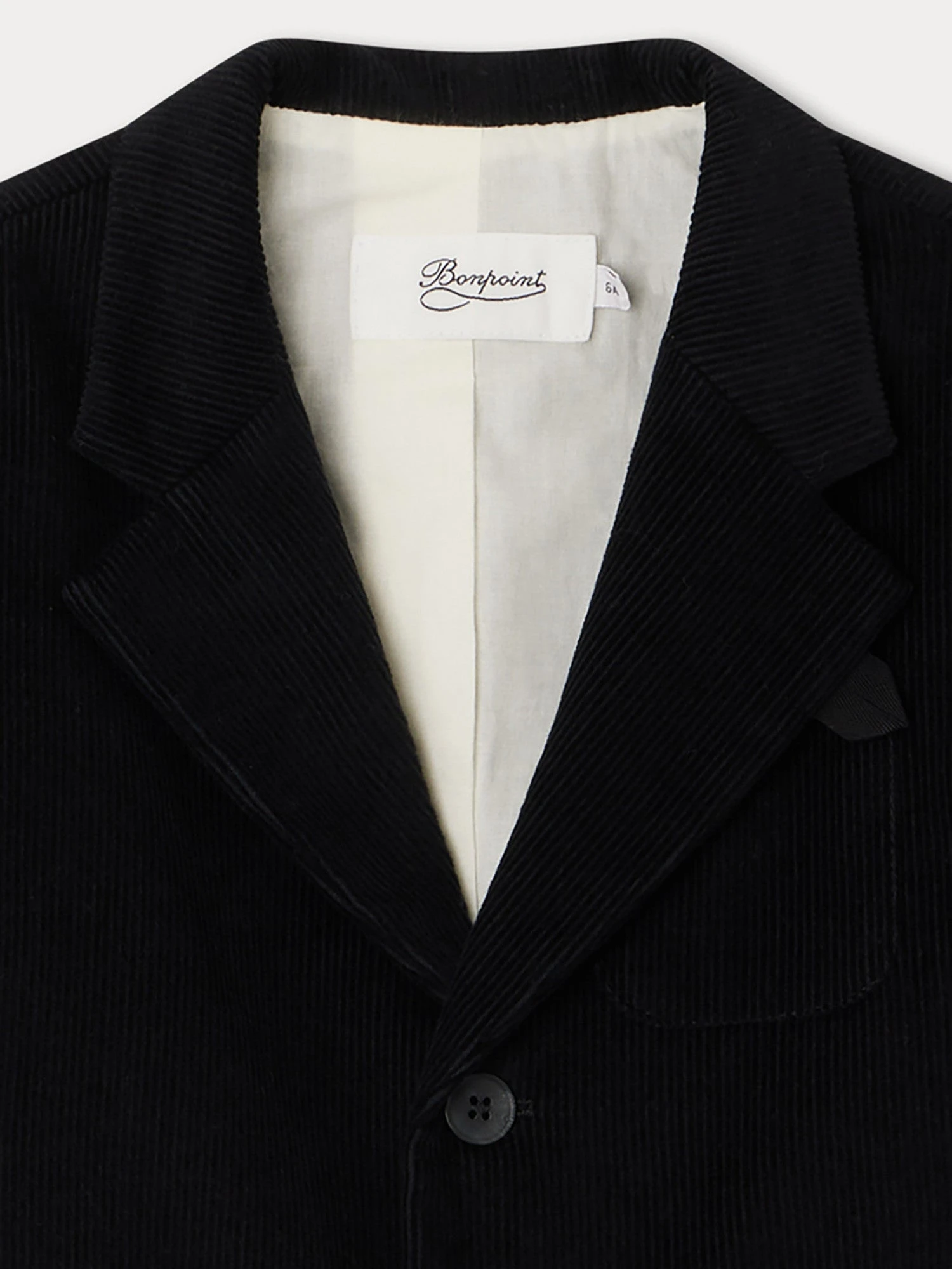 La veste Tomas pour garçon revisite le costume avec une matière intemporelle, le velours côtelé. Ce modèle uni est doublé de tissu contrastant, élégant et confortable.