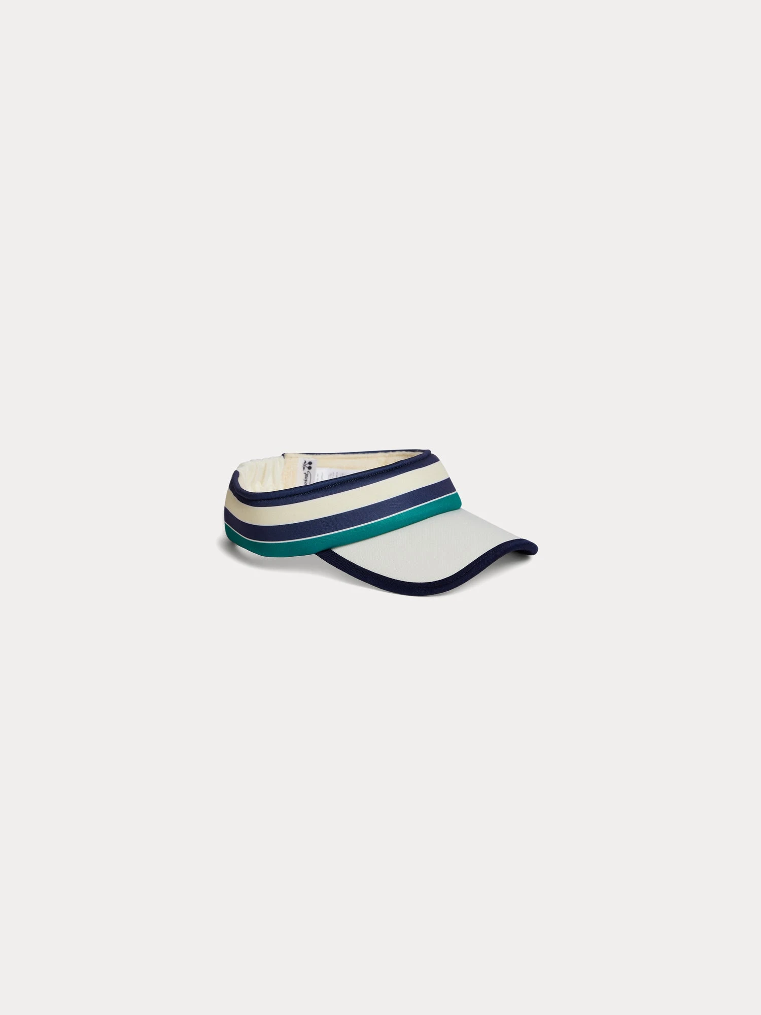 Cette visière pour garçon Fabre est une indispensable pour se protéger du soleil lors des activités sportives. Le tour de tête à rayures tricolores lui confère une allure sportive.